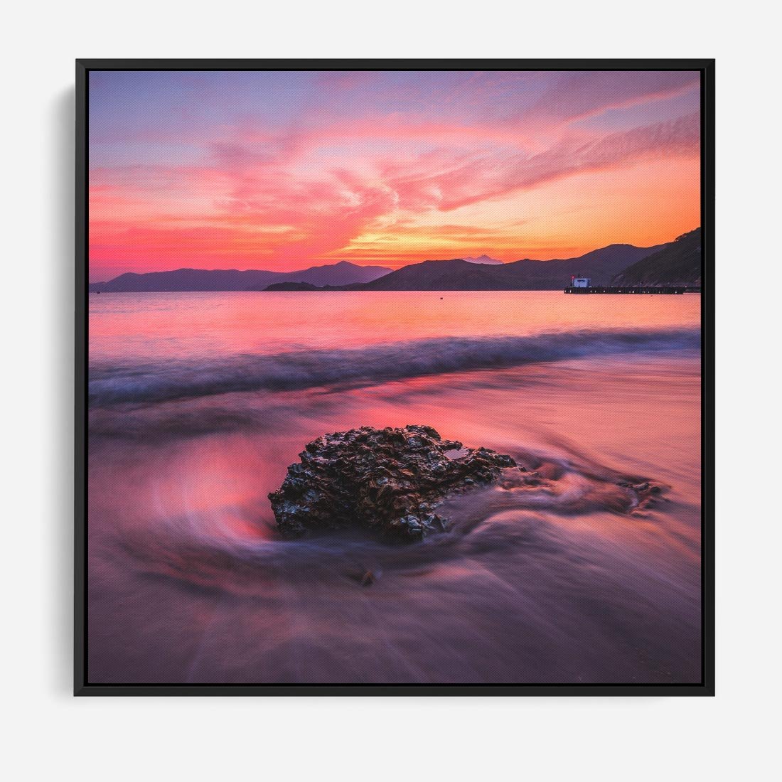 Obraz w ramie 50x50 - Zaklęty Zachód - magiczny zachód słońca, fioletowe - rama czarna