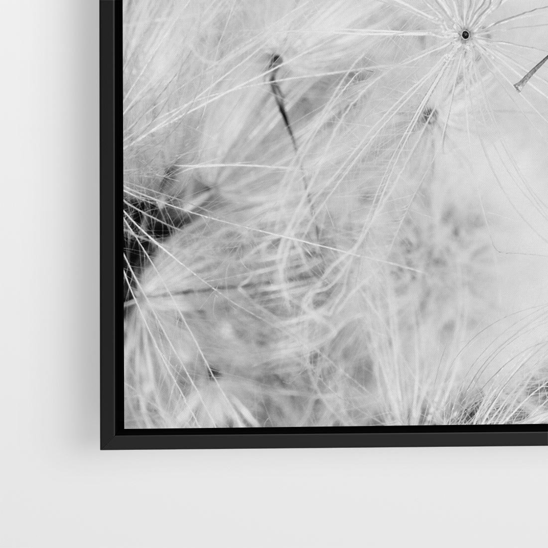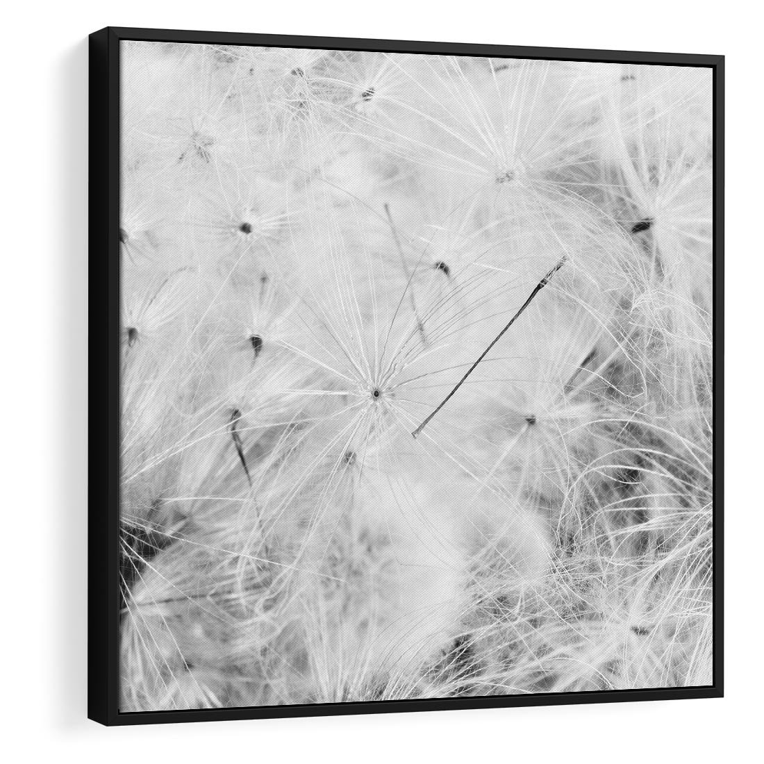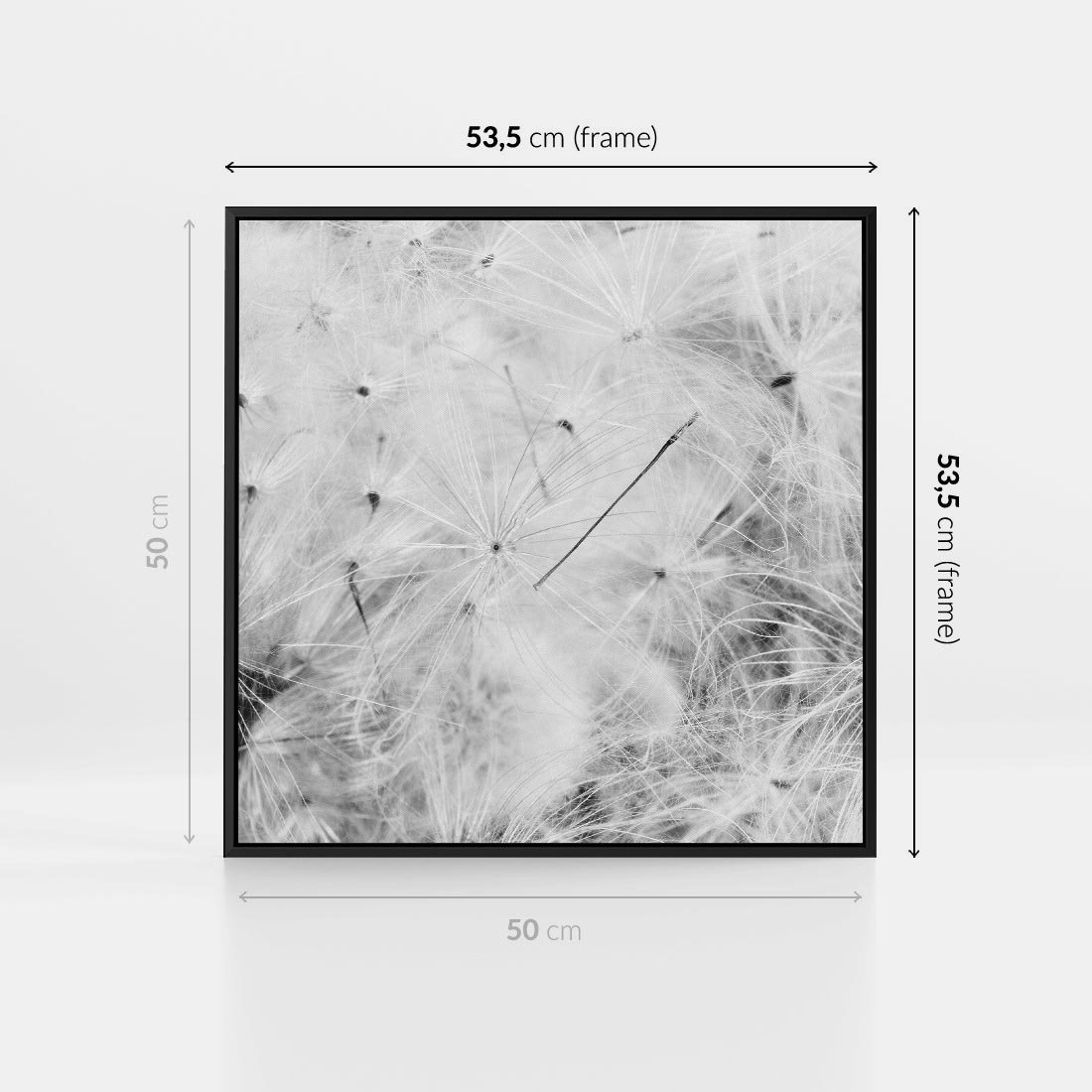 Obraz w ramie 50x50 - Zdmuchnięty Puch - dmuchawce, delikatne - rama czarna