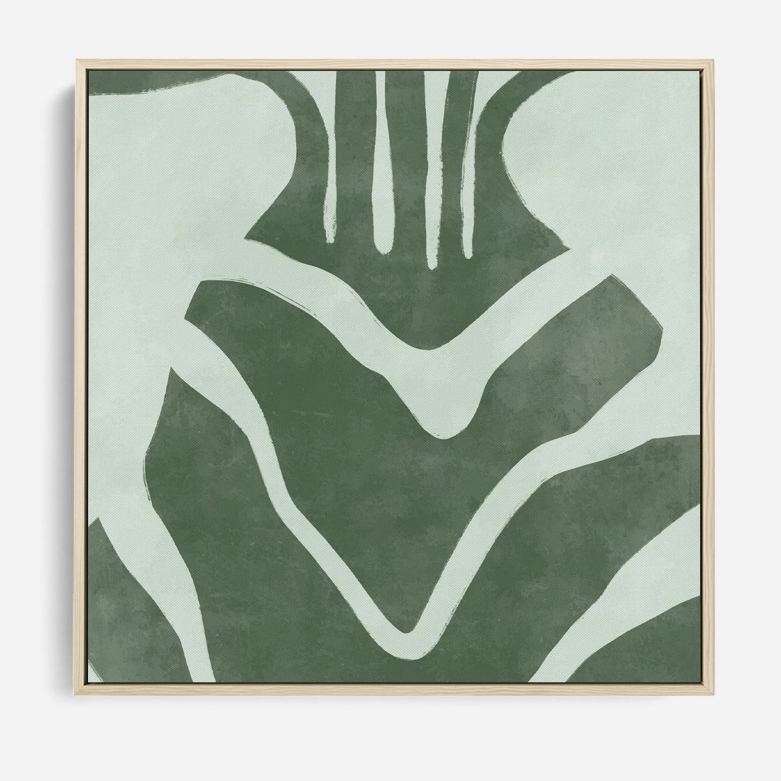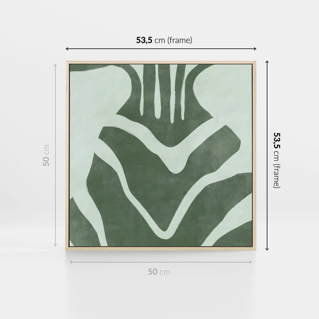 Obraz w ramie 50x50 - Zieleń Odpoczynku - zielony plakat, nieregularne splątane linie - rama drewno