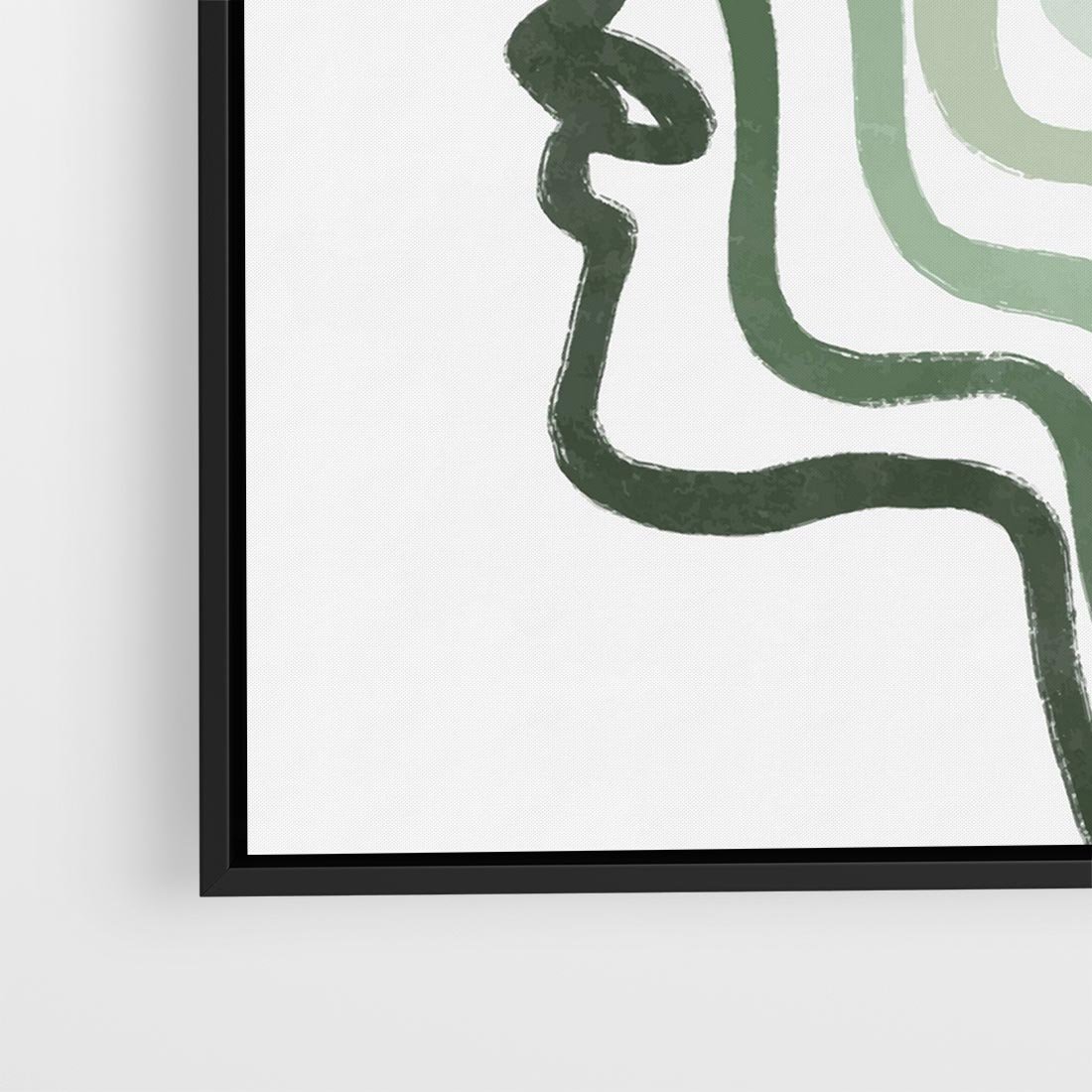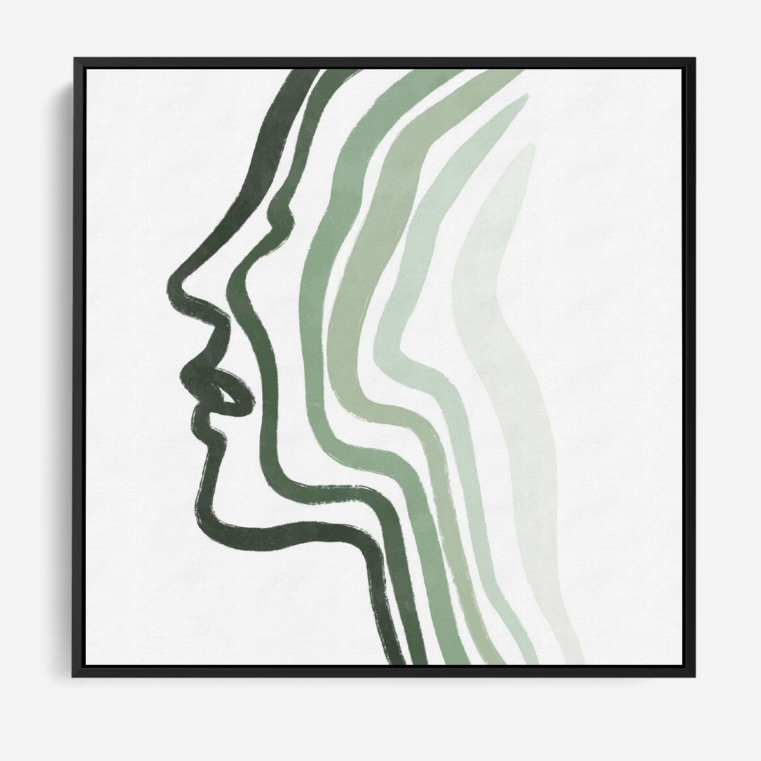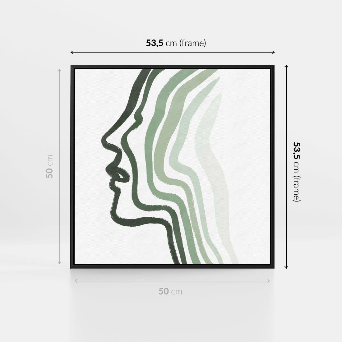 Obraz w ramie 50x50 - Zielony Profil - abstrakcja, zielony portret z profilu - rama czarna
