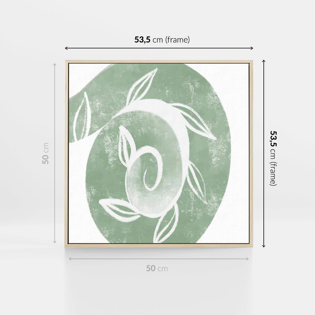 Obraz w ramie 50x50 - Zielony Świat Odpoczynku - abstrakcyjny zielony motyw, skandynawski design - rama drewno