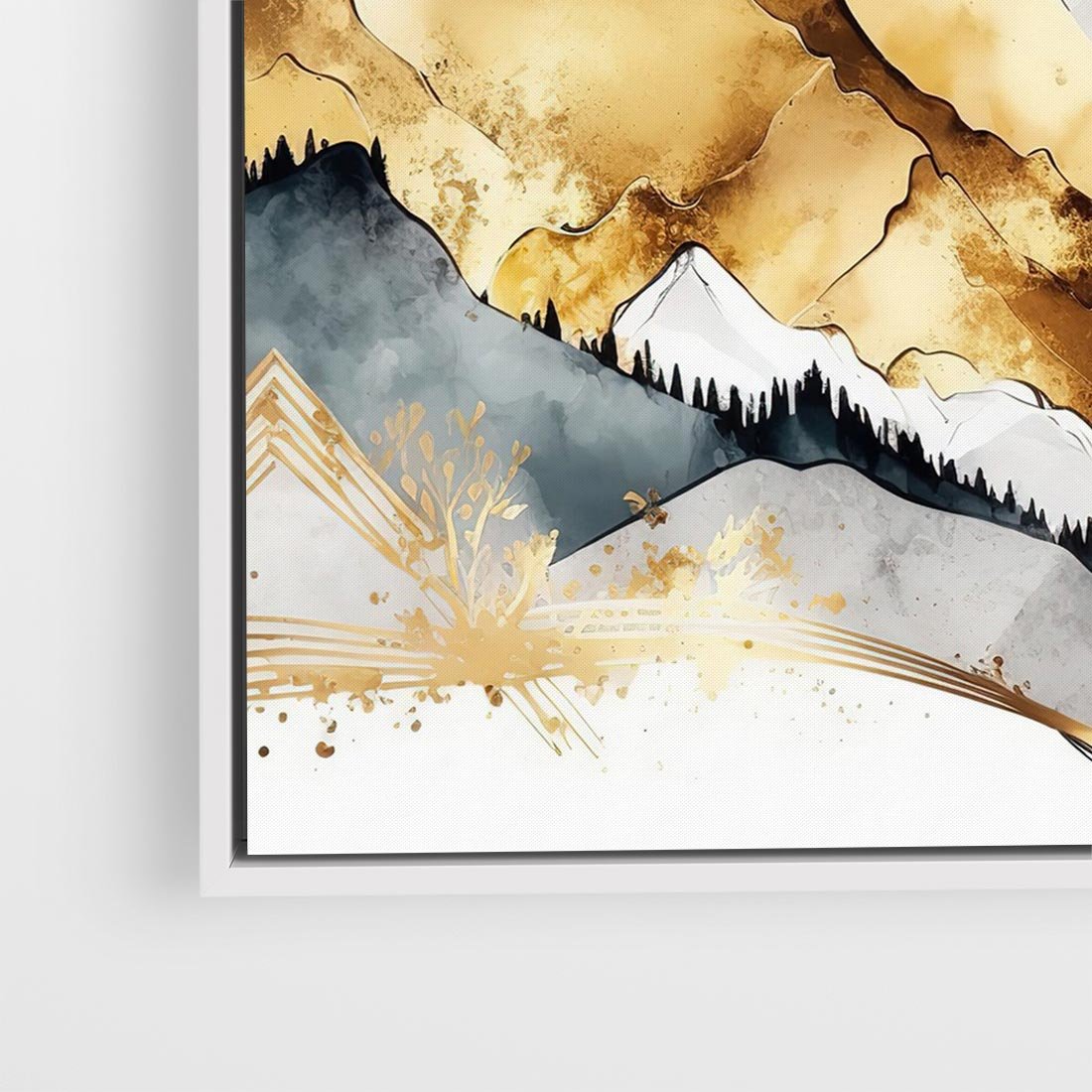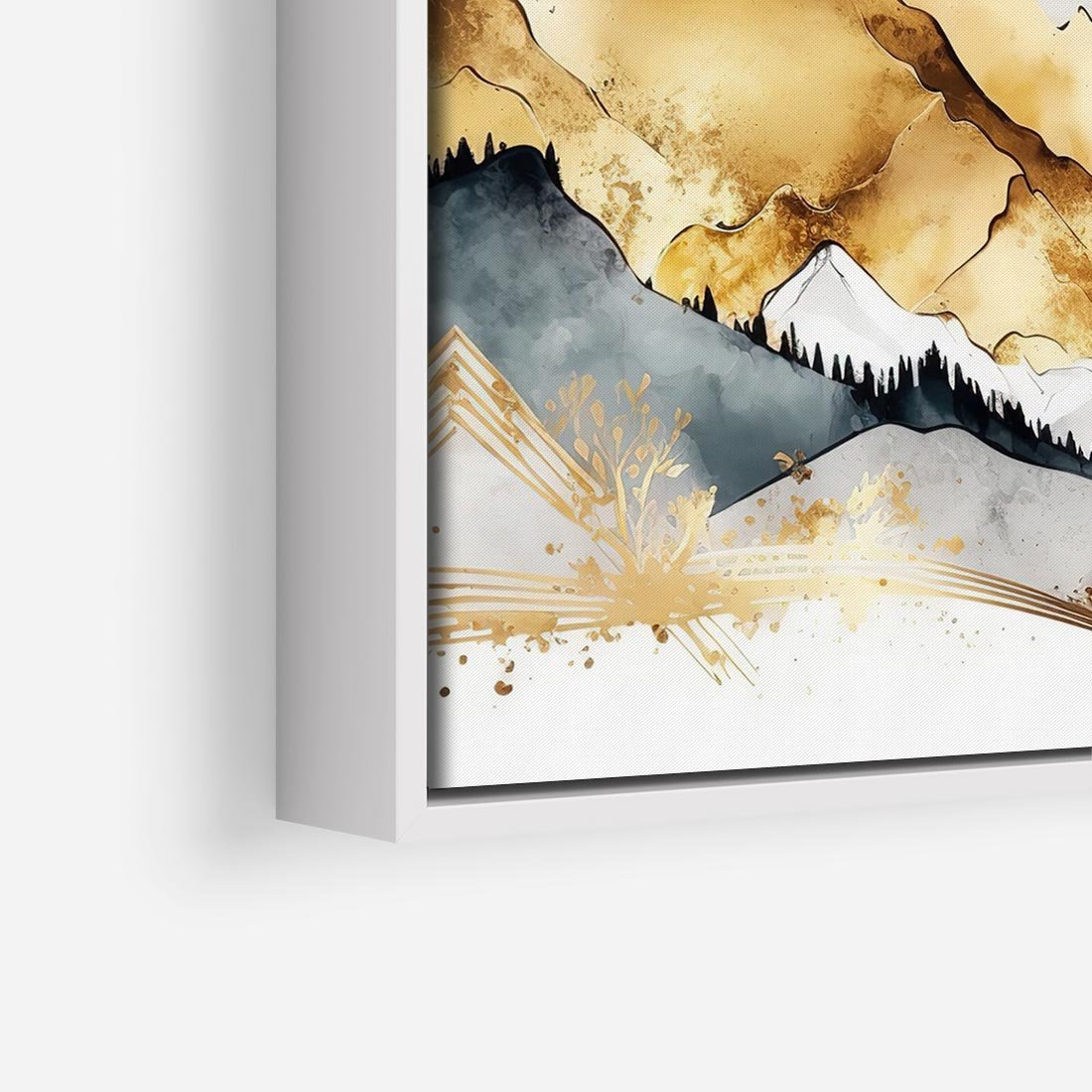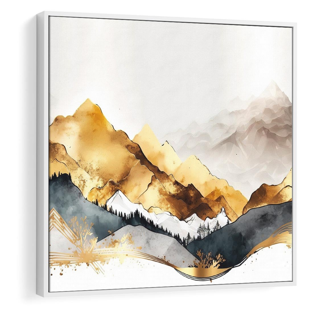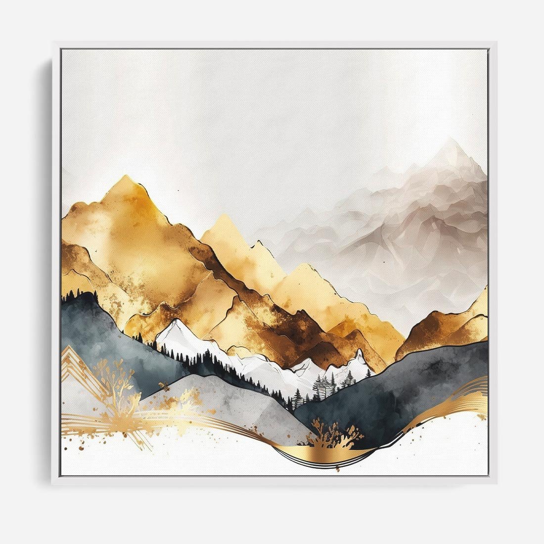 Obraz w ramie 50x50 - Złote Góry - akwarela, graficzne góry - rama biała