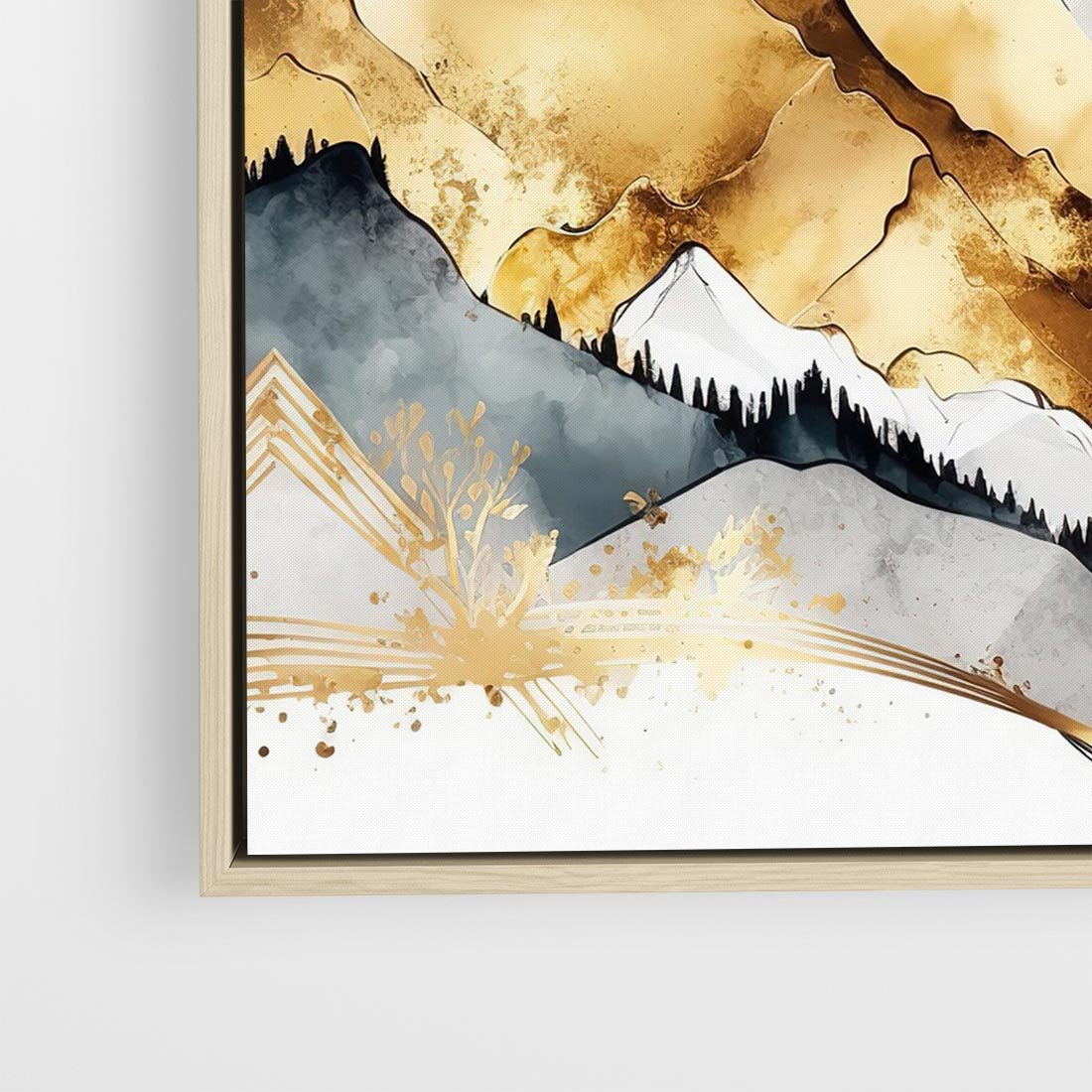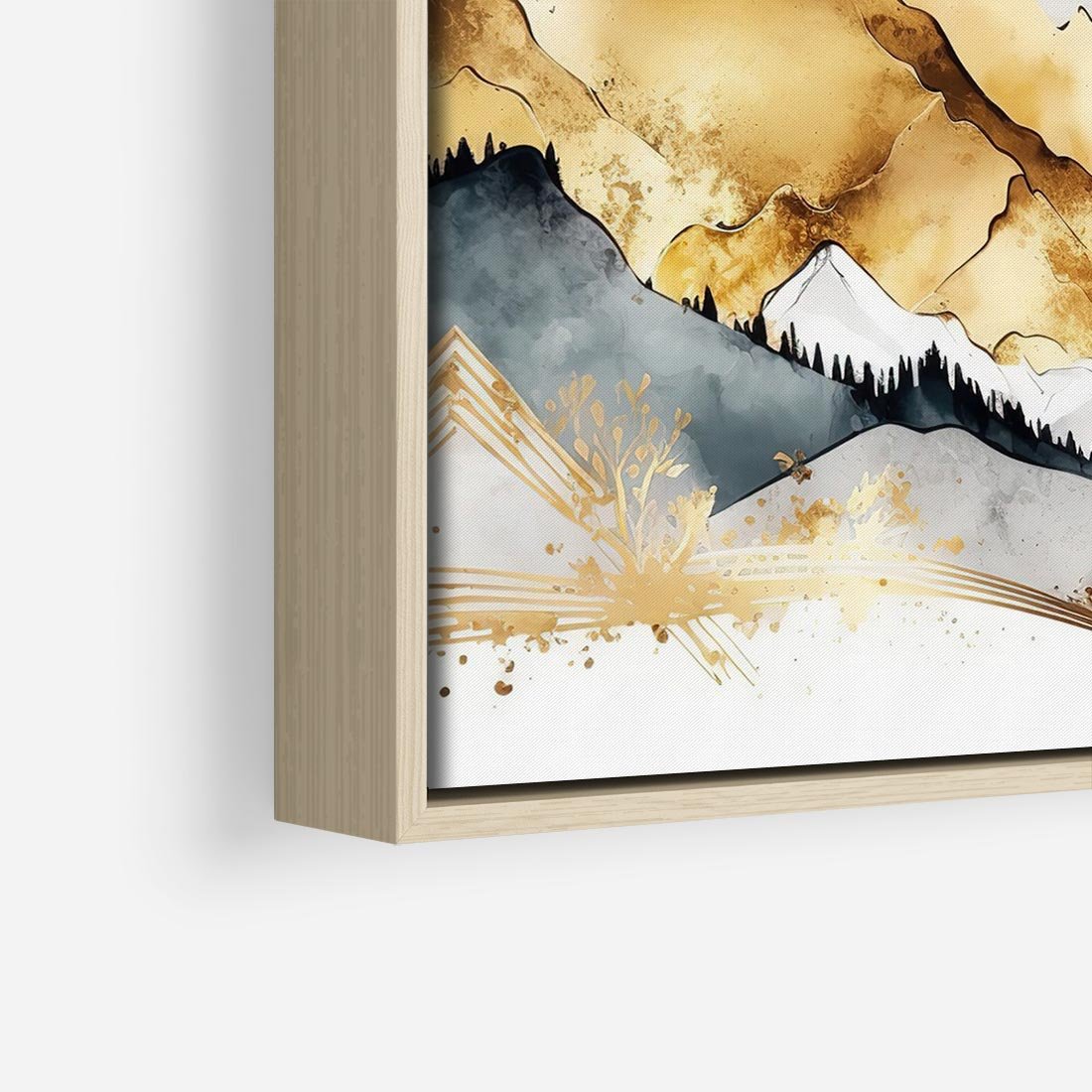 Obraz w ramie 50x50 - Złote Góry - akwarela, graficzne góry - rama drewno