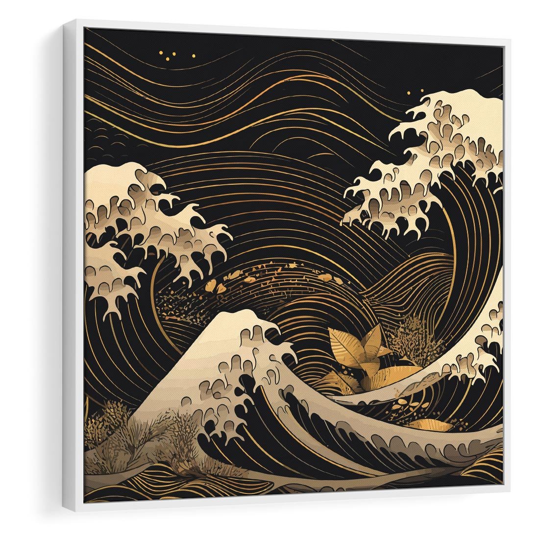 Obraz w ramie 50x50 - Złote Piękno - ciemny obraz, fala morska - rama biała