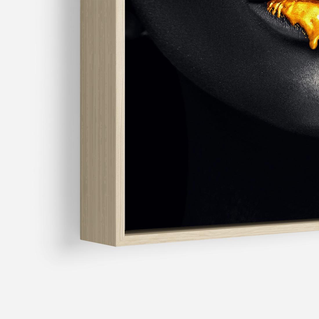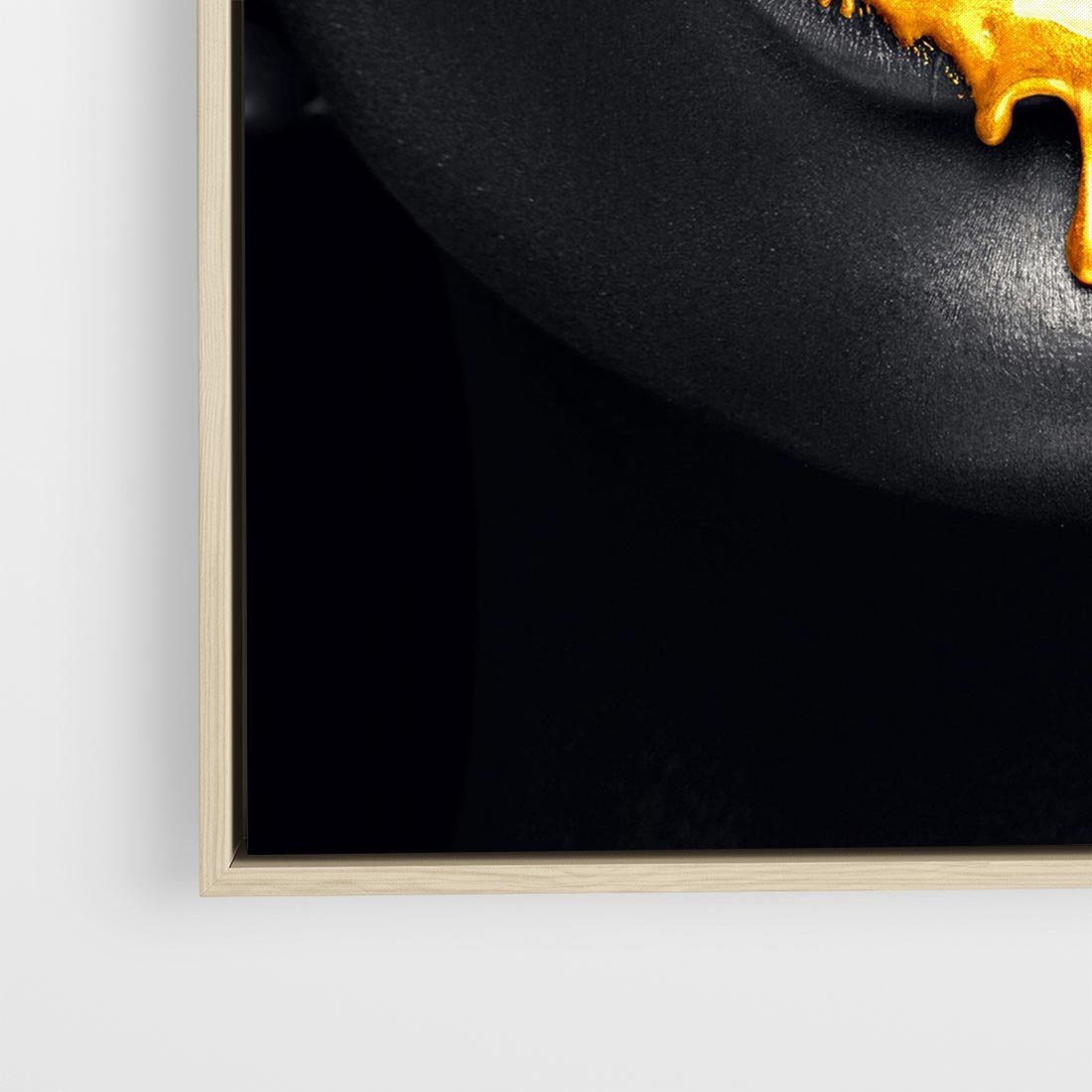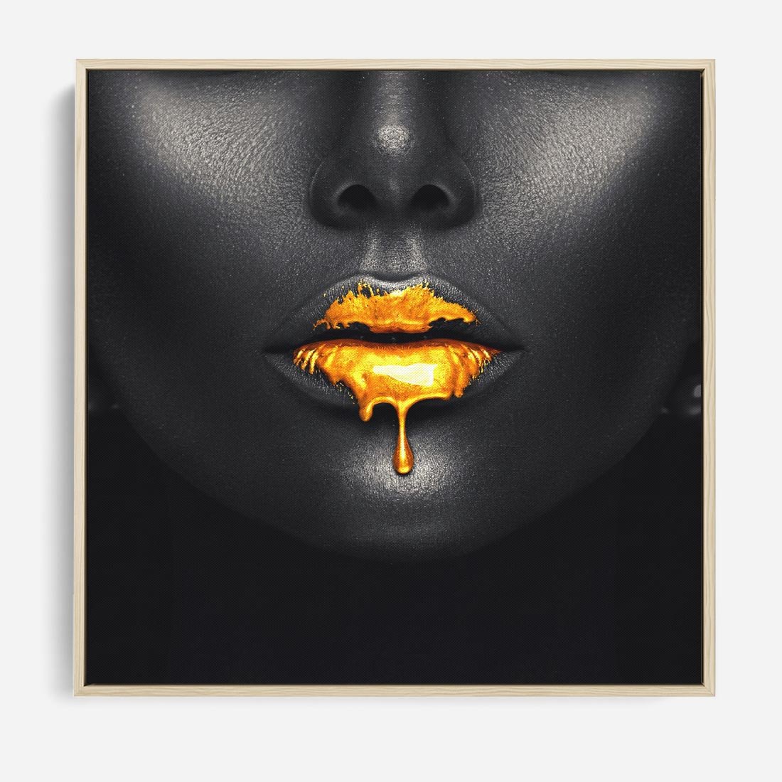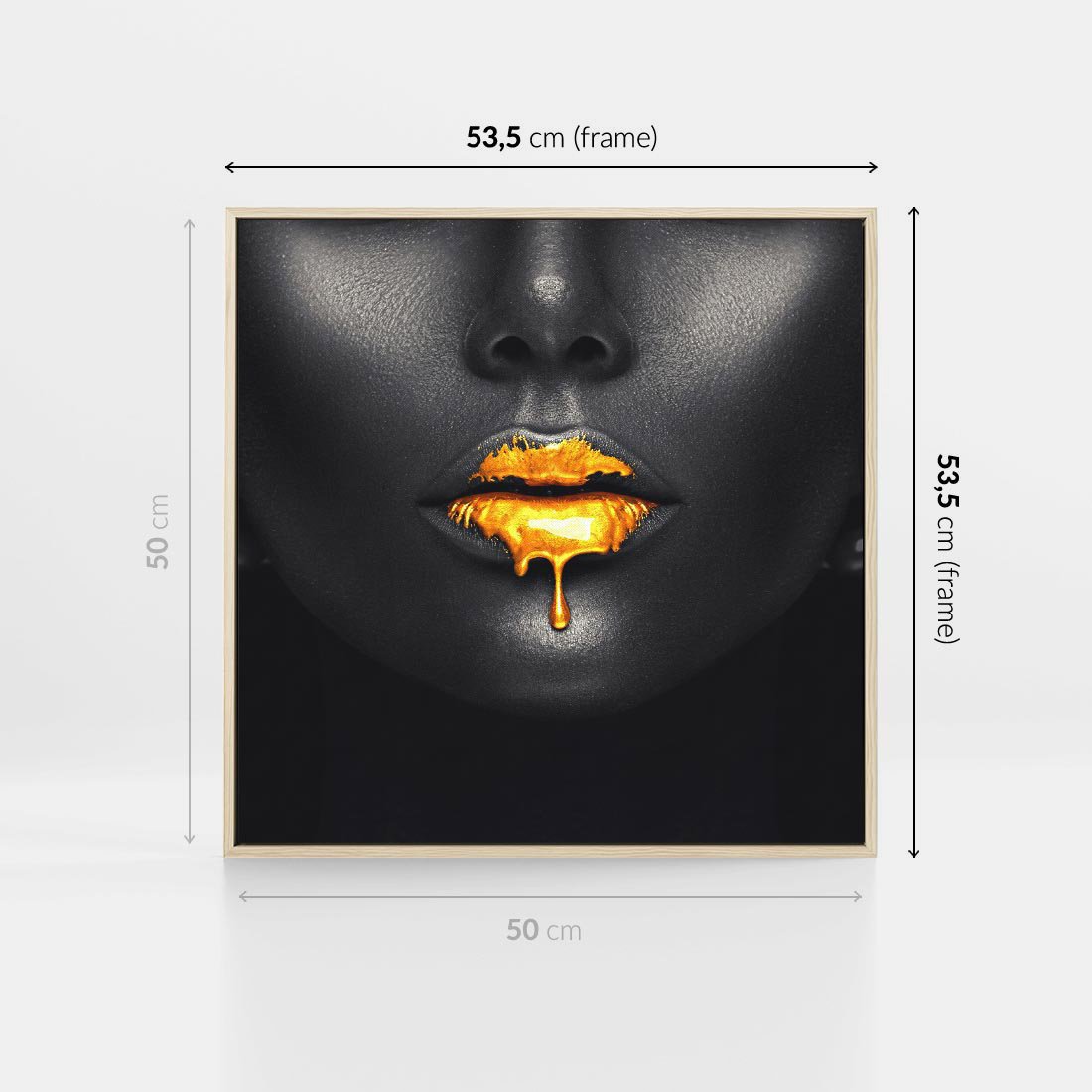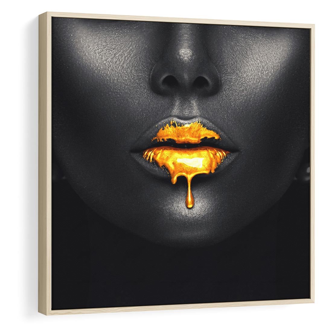 Obraz w ramie 50x50 - Złote Usta Kobiety - złote, usta - rama drewno