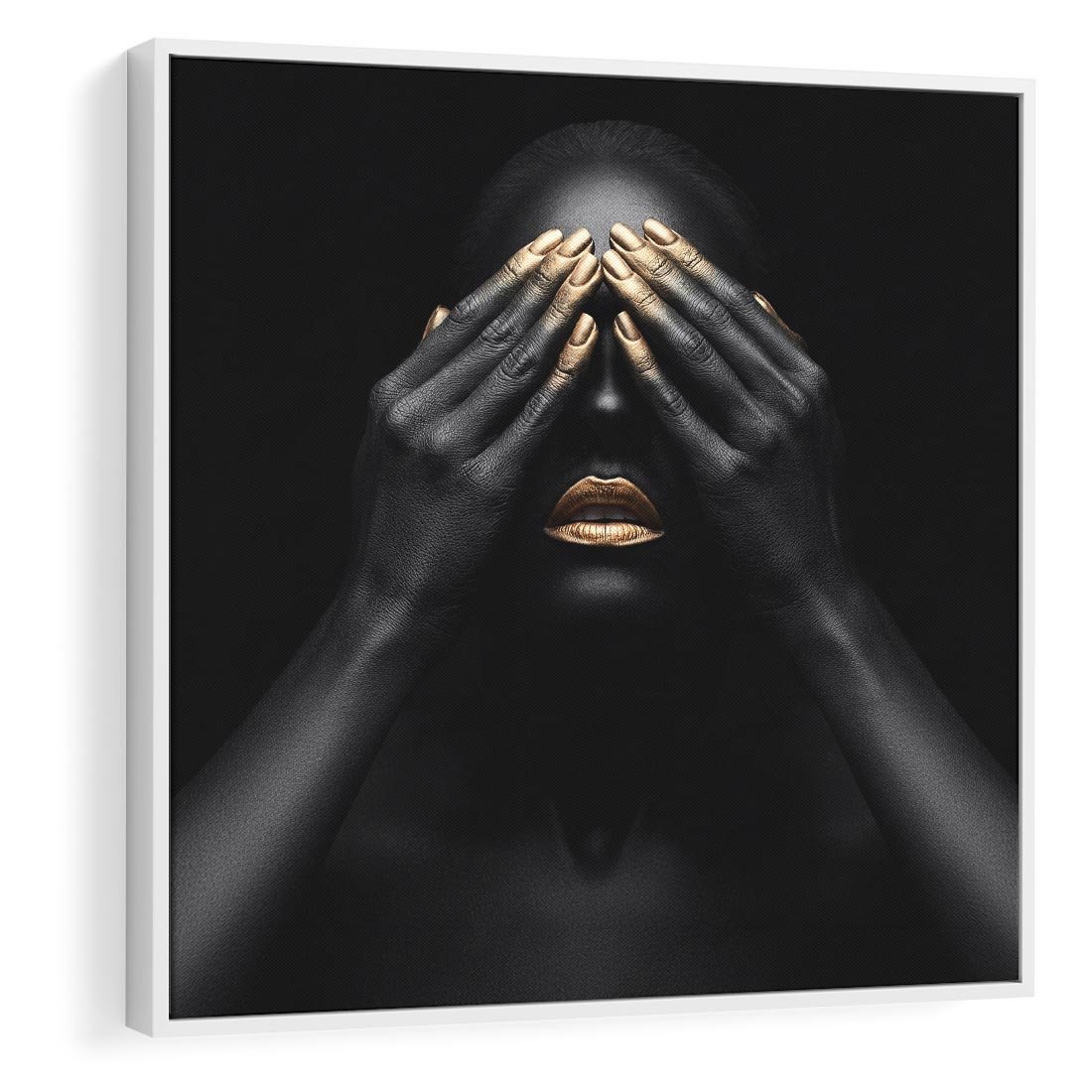 Obraz w ramie 50x50 - Złote Usta wyjątkowa subtelność - złote usta, złote palce - rama biała