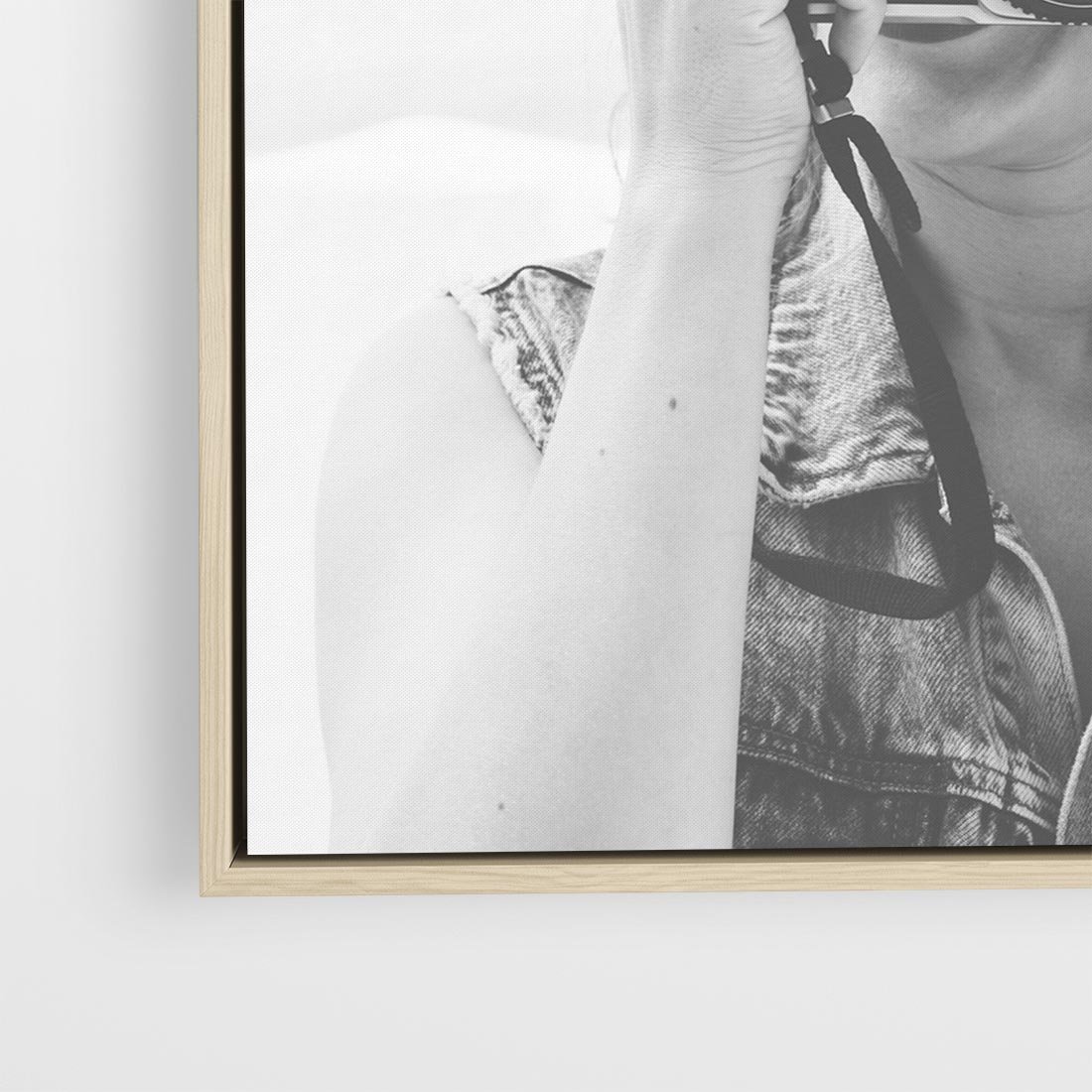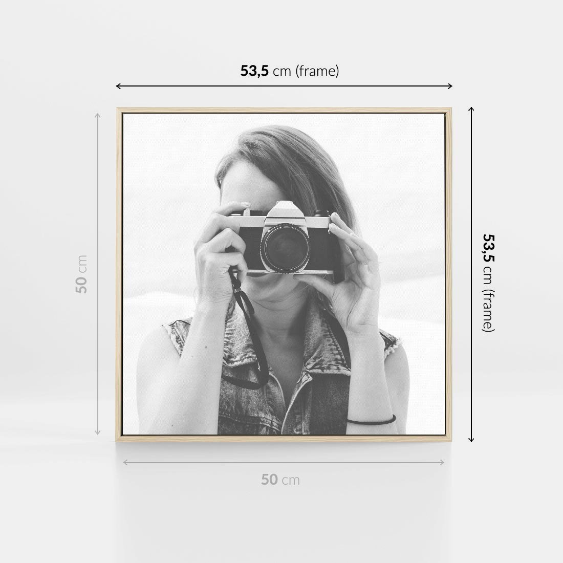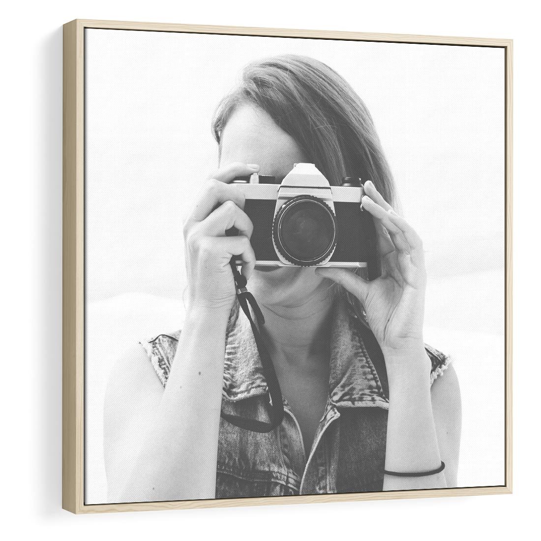 Obraz w ramie 50x50 - Zrób mi Zdjęcie - fotografia, kobieta z aparatem - rama drewno