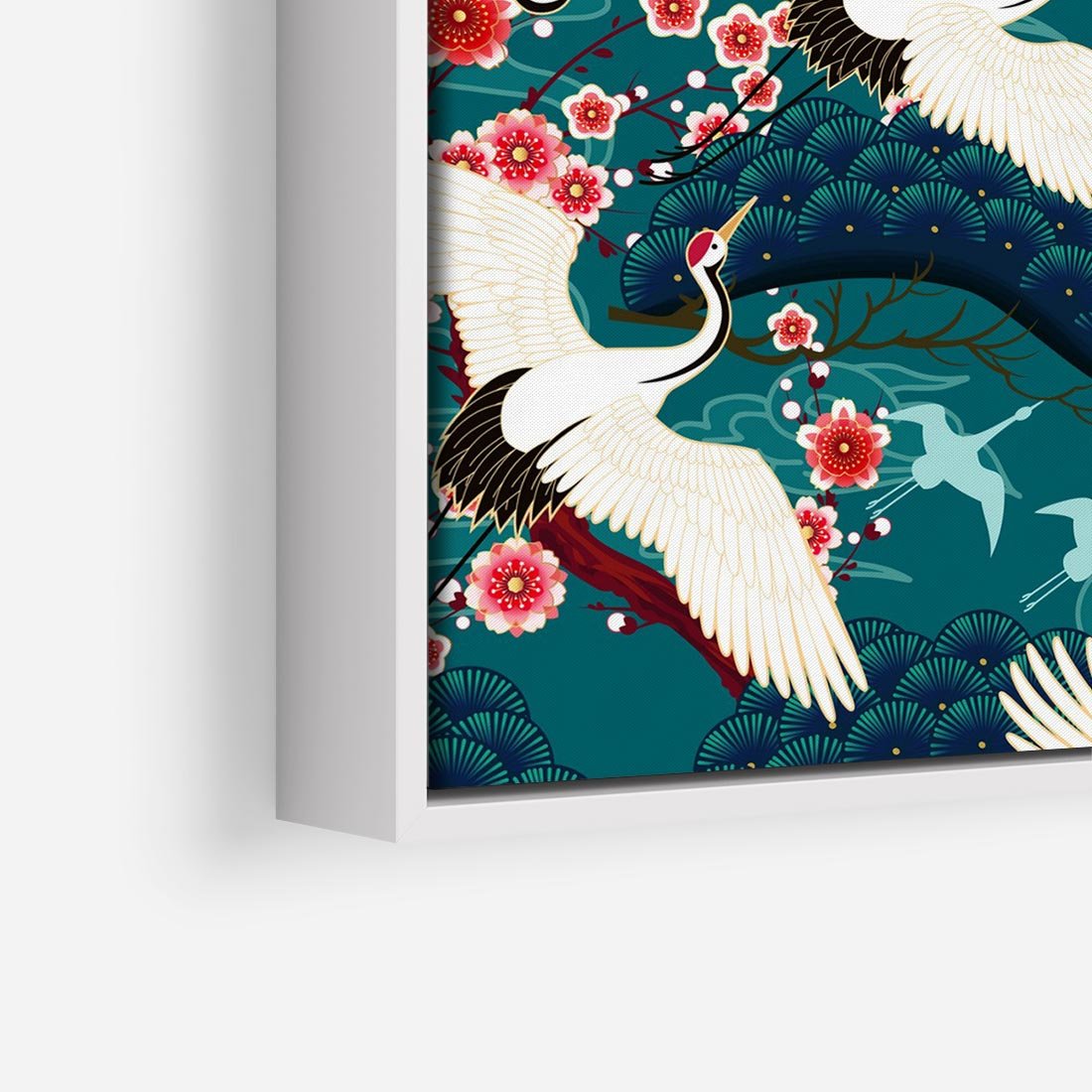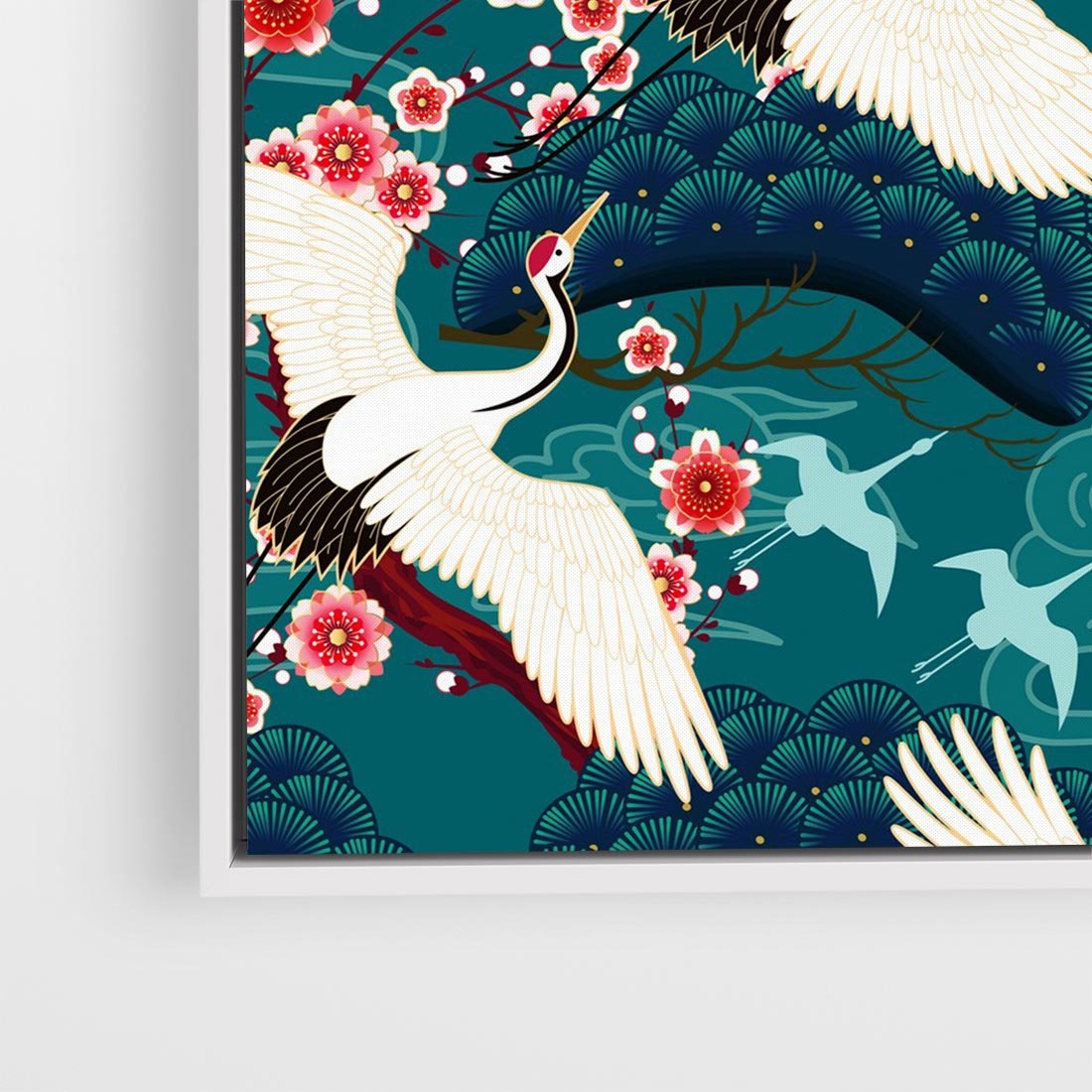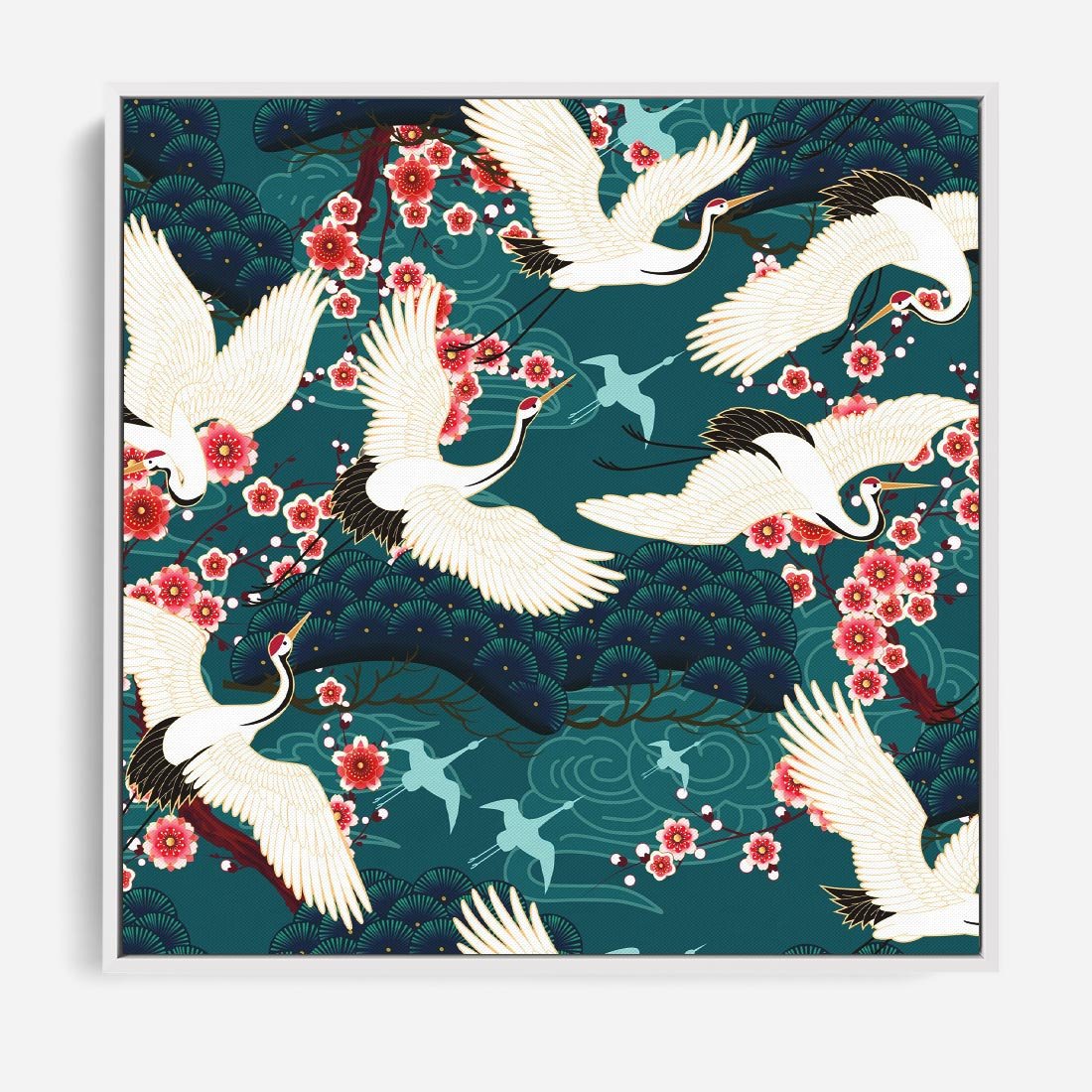 Obraz w ramie 50x50 - Żurawie Wachlarze - orientalne japońskie żurawie, grafika - rama biała