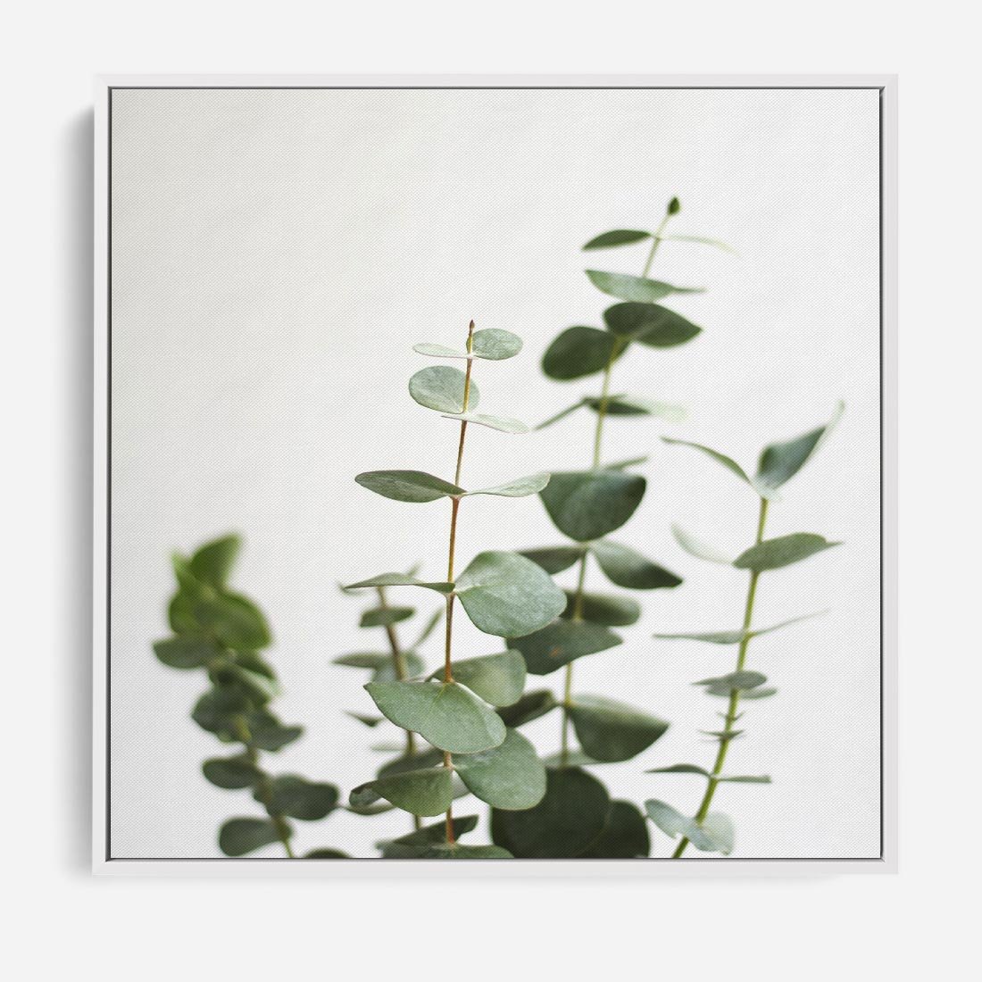 Obraz w ramie 50x50 - Żywa eukaliptusowa zieleń - eukaliptus, zielone - rama biała