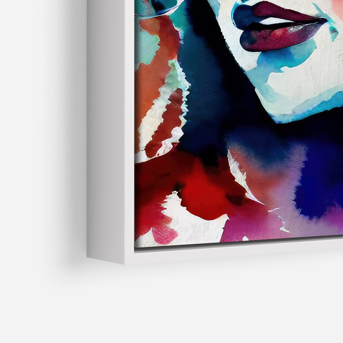 Obraz w ramie 50x70 - Abstrakcyjna ekstaza barw - abstrakcyjny portret kobiety, szkic czarną kreską - rama biała
