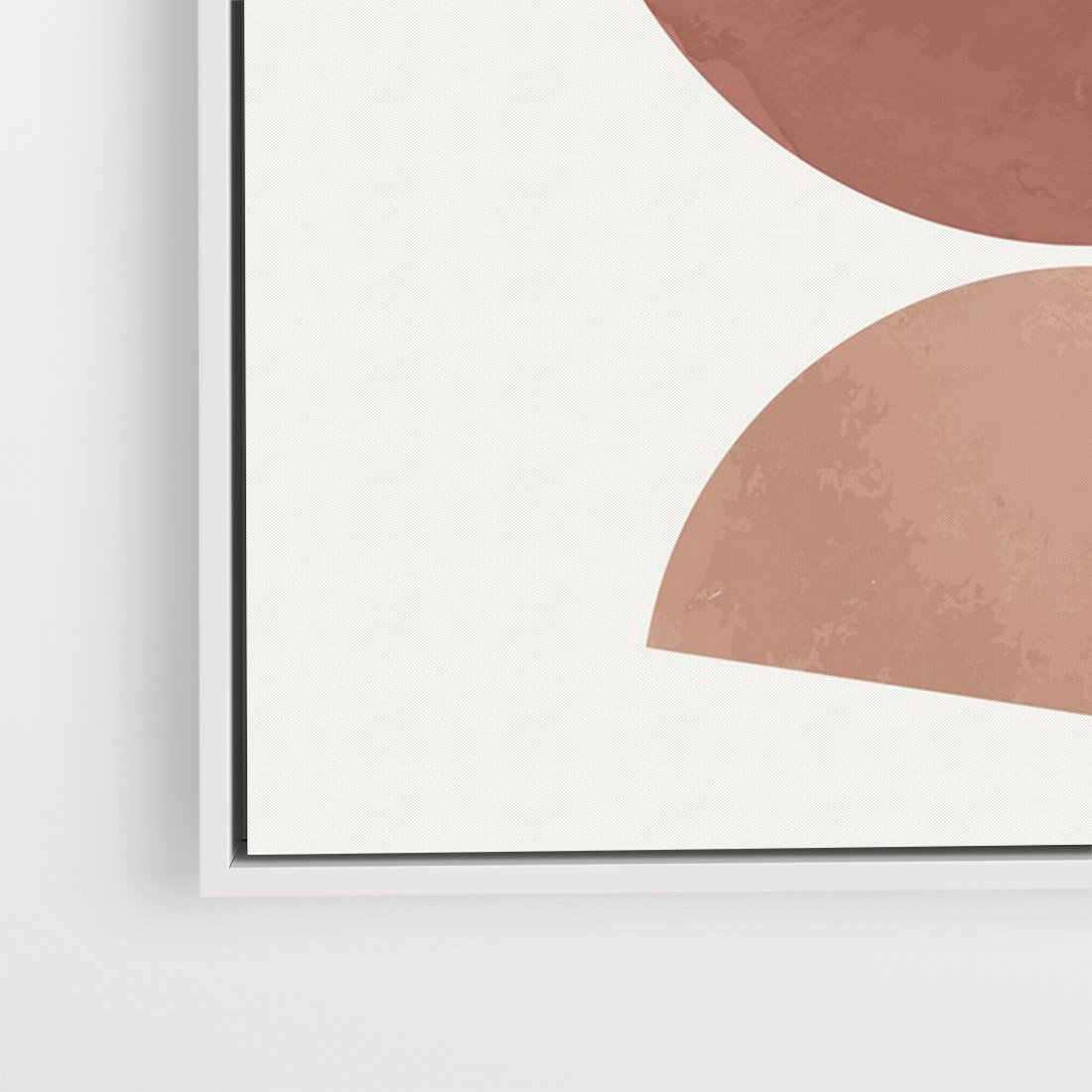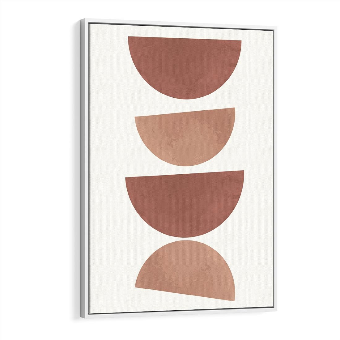 Ten obraz przedstawia abstrakcyjne geometryczne kształty w stonowanych odcieniach brązu i beżu. Doskonale wpasuje się w minimalizm, boho styl i nowoczesne wnętrza.