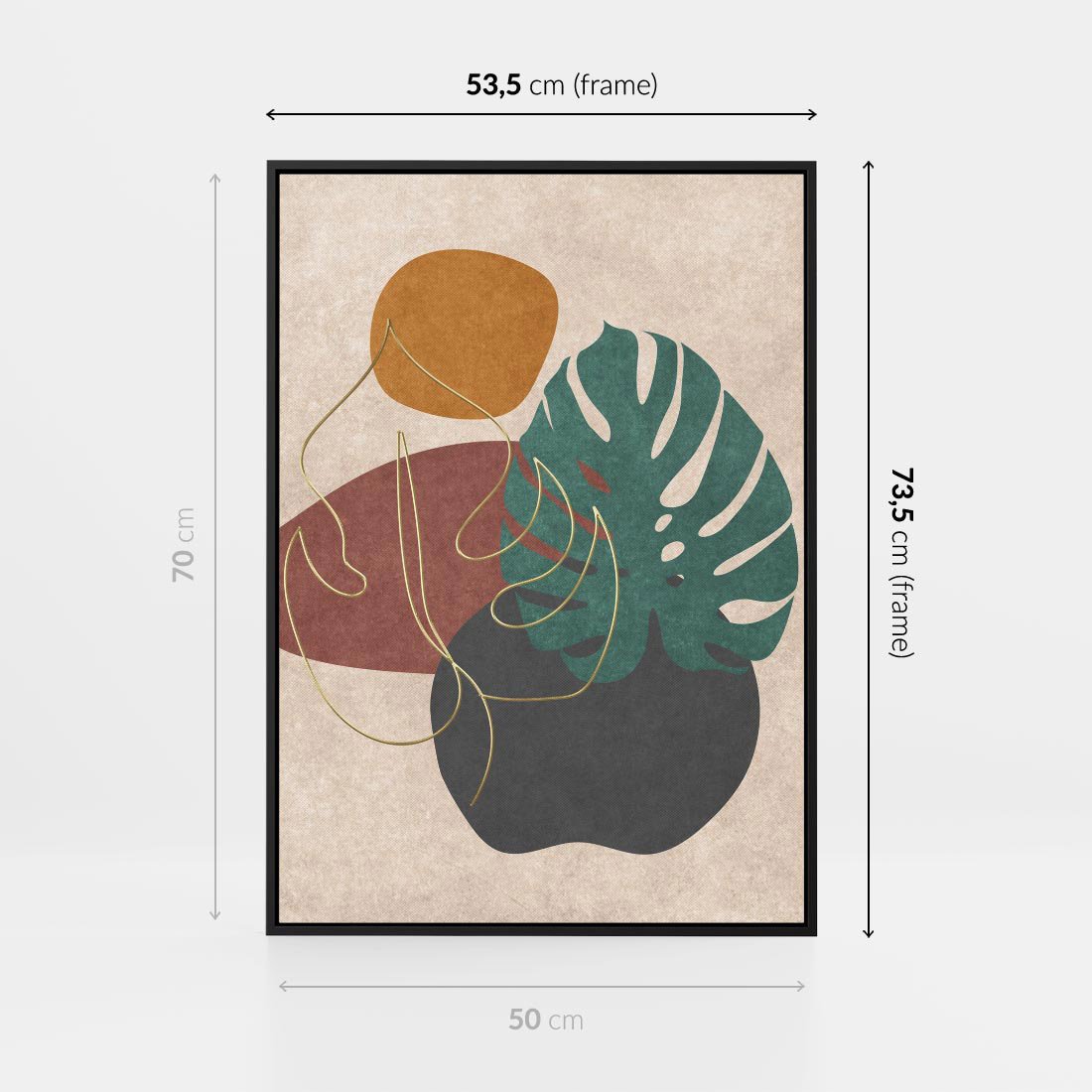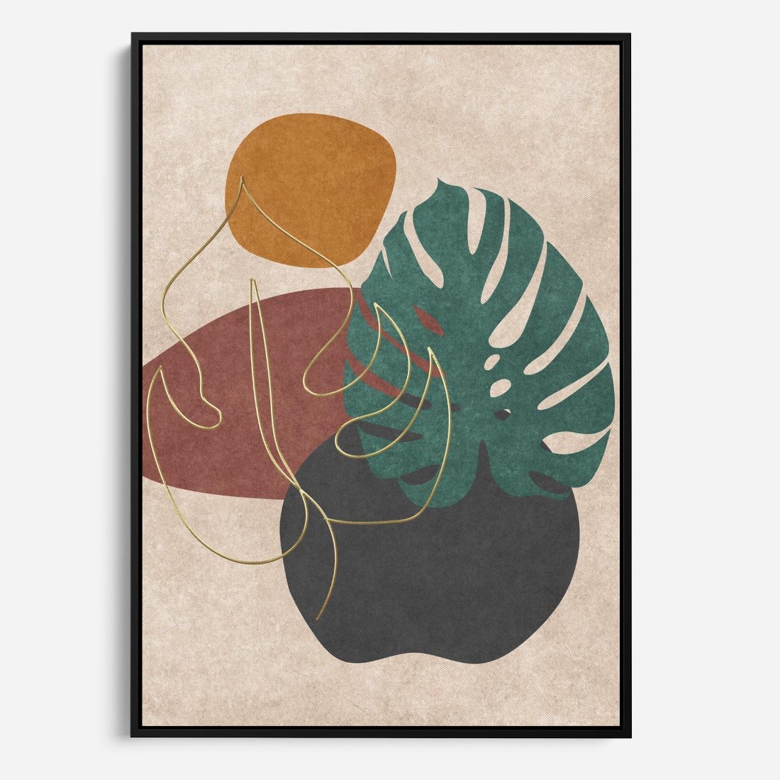 Obraz w ramie 50x70 - Akwarelowa Magia Liści - grafika, styl mid century - rama czarna