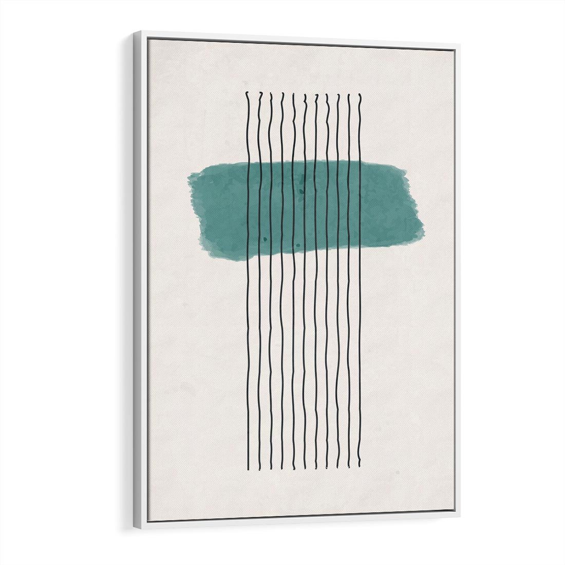 Abstrakcyjna akwarelowa plama w odcieniach turkusu, zdobiąca się nieregularnymi kreskami i dynamicznymi liniami, emanuje minimalistycznym urokiem i wyjątkową energią.