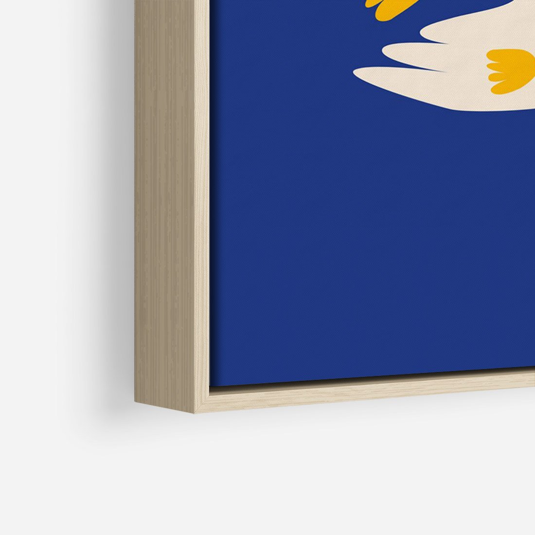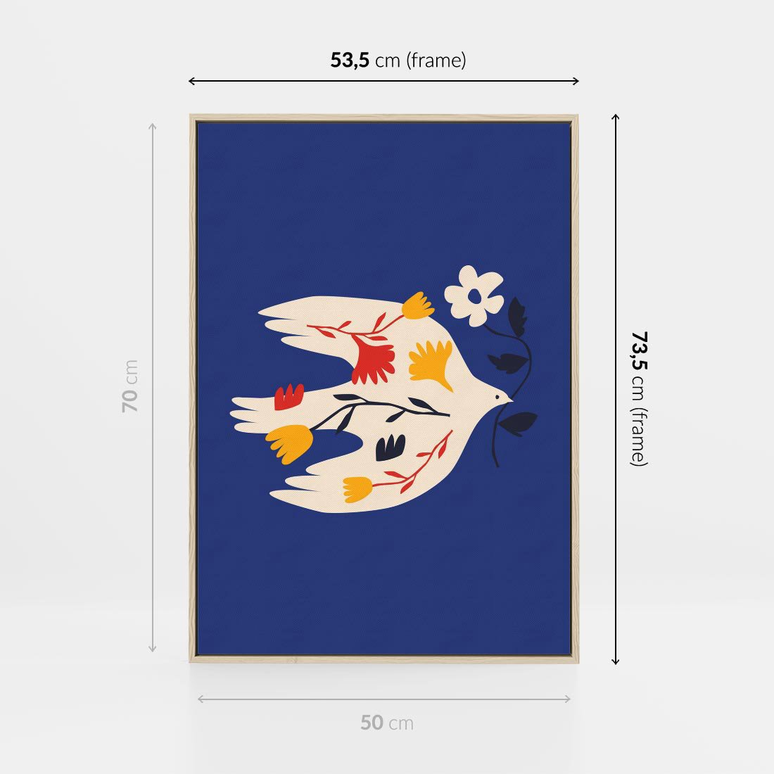 Obraz w ramie 50x70 - Bezczasowy Szept - niebieskie tło, abstrakcyjny biały ptak - rama drewno