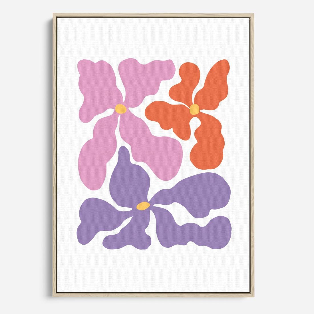 Ten plakat ukazuje abstrakcyjne, kolorowe kwiaty w minimalistycznym stylu, w subtelnych odcieniach pasteli. Sztuka ta harmonicznie łączy wyraziste kolory z prostotą kompozycji, tworząc spokojny, lecz jednocześnie wibrujący obraz, który wzbogaca Twoją przestrzeń i przyciąga wzrok.