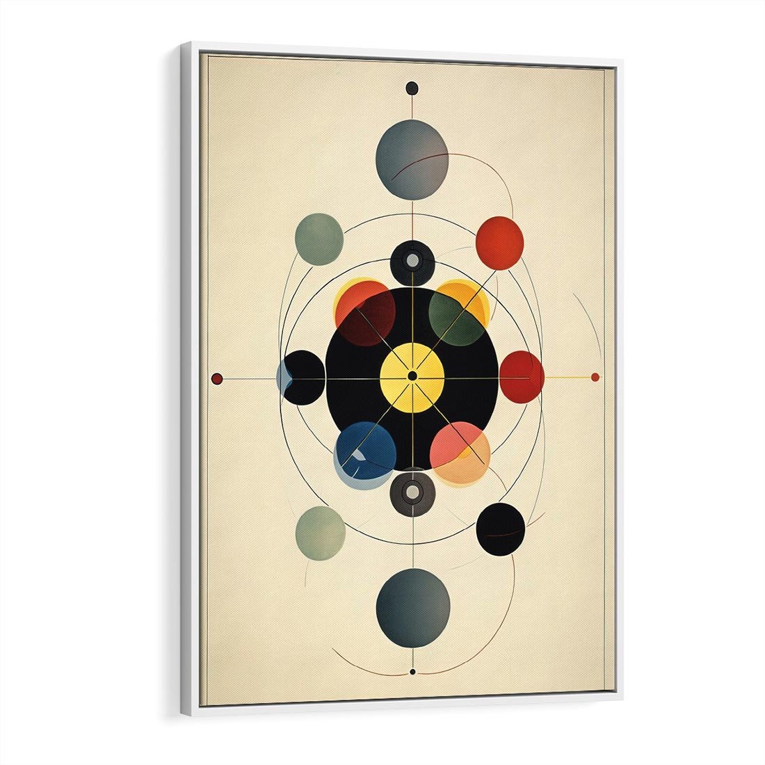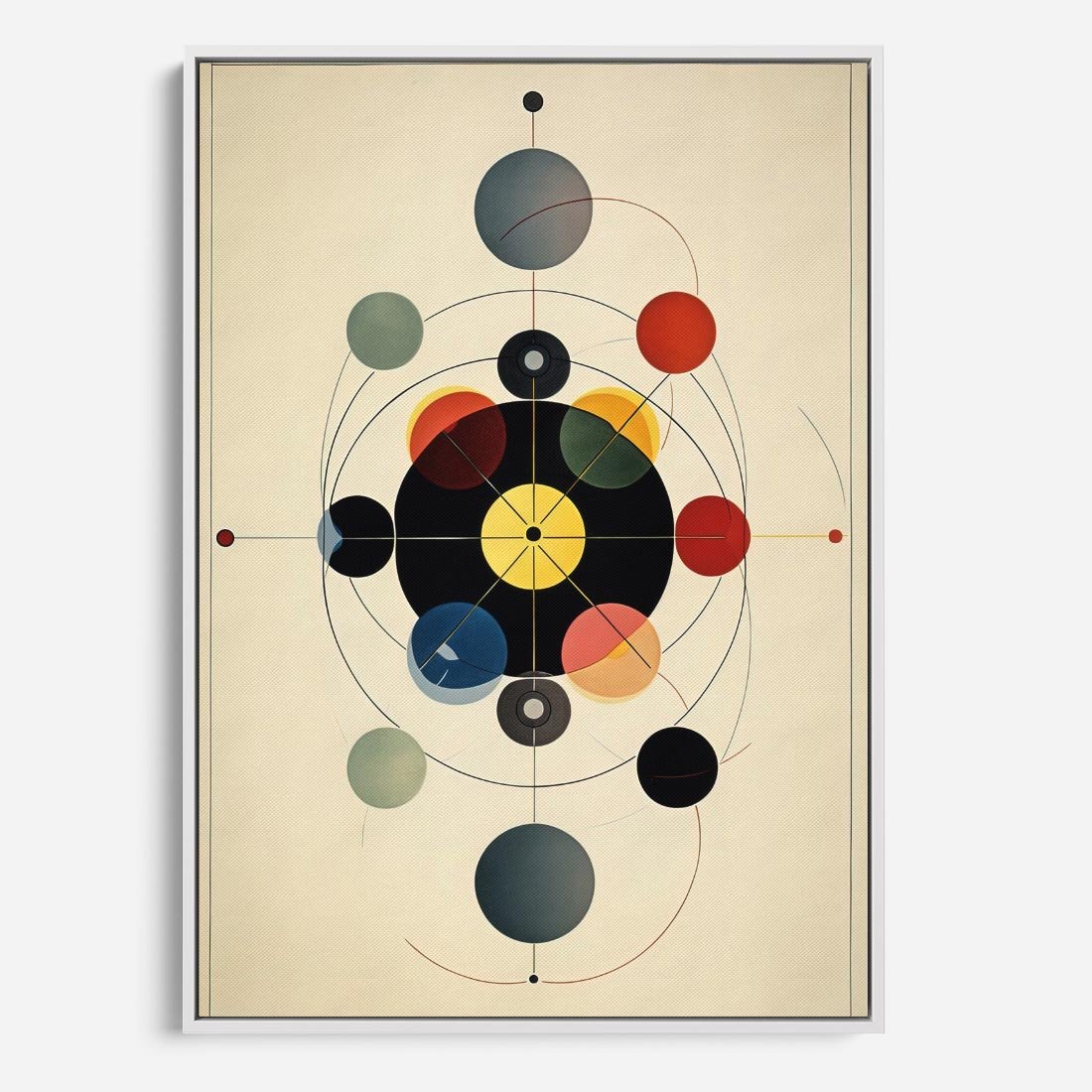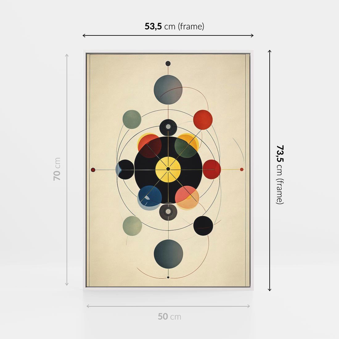 Ta abstrakcyjna geometryczna kompozycja zachwyca wyrazistymi kołami, dynamicznymi liniami i żywymi kolorami, nawiązującymi do charakterystycznego stylu Wassily'ego Kandinsky'ego. To wizualna podróż w świat abstrakcji i emocji.