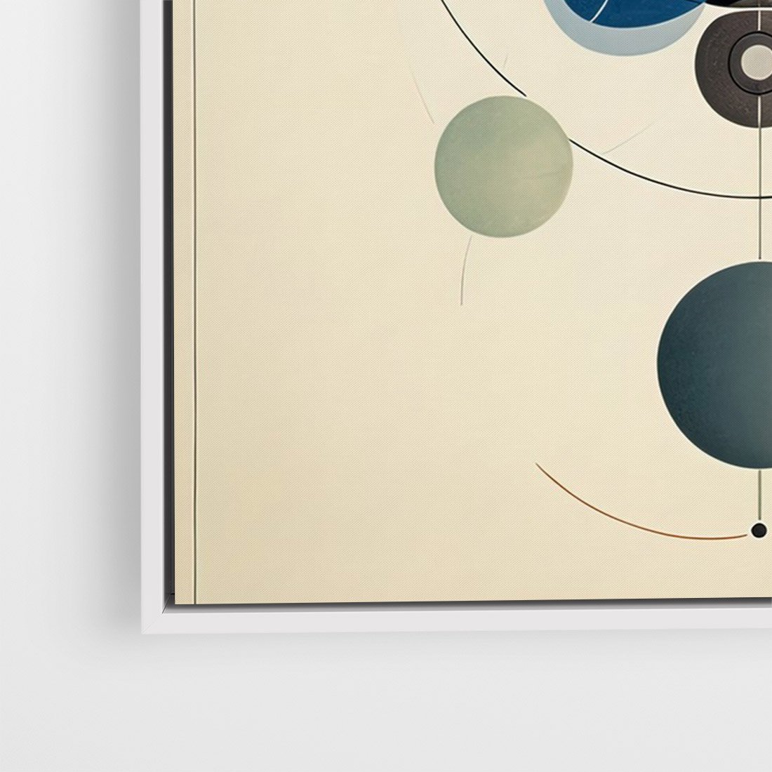 Obraz w ramie 50x70 - Bezgraniczny Taniec Światła - abstrakcyjna geometryczna kompozycja, koła linie - rama biała