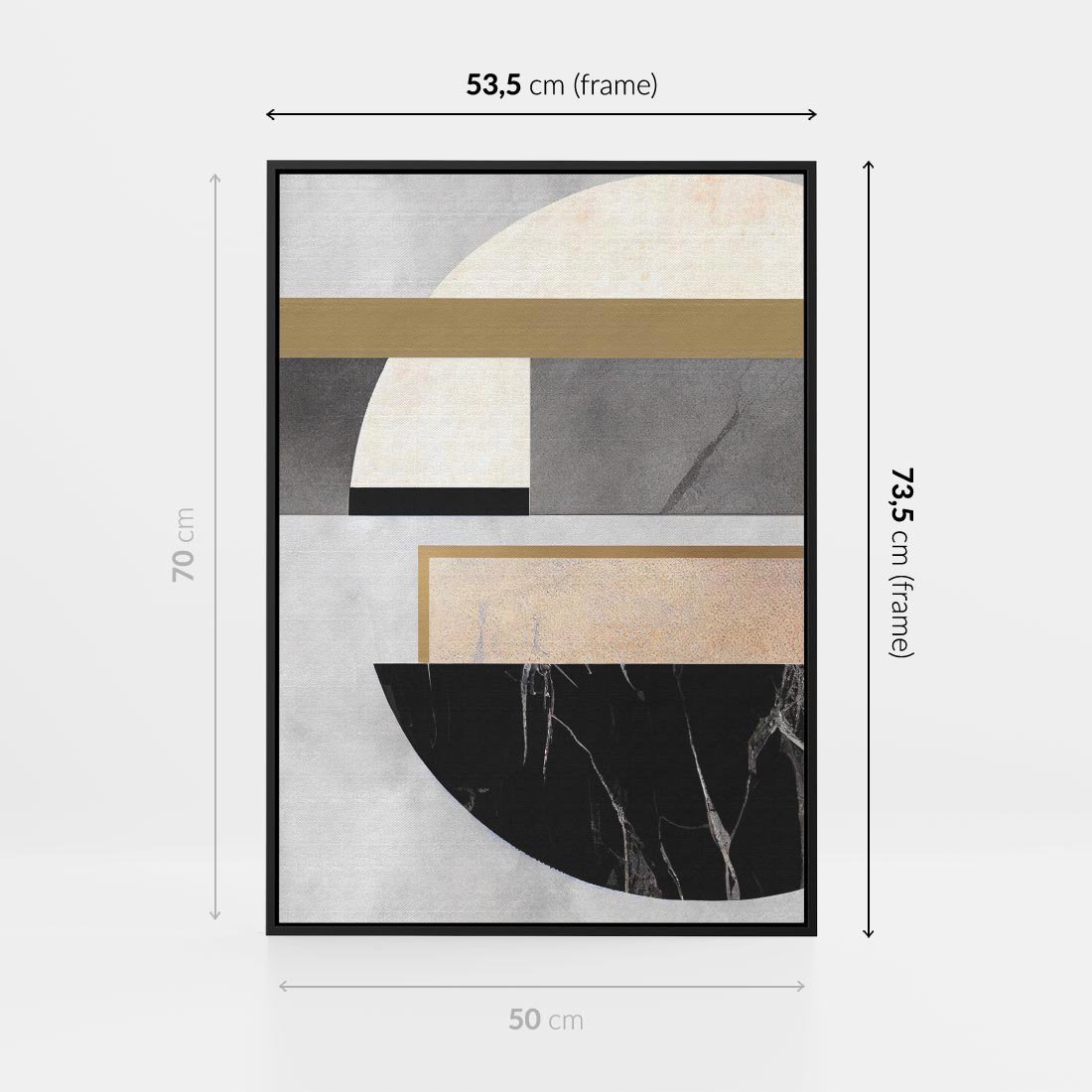 Unikalny obraz, który w nowoczesny sposób łączy geometrię, koła i tekstury szarego marmuru. Subtelne pastele w połączeniu z białymi i czarnymi formami tworzą harmonijną kompozycję, emanującą elegancją i spokojem. To wyjątkowe dzieło sztuki dodaje przestrzeni nowoczesności, zachęcając do odkrywania estetycznych detali.