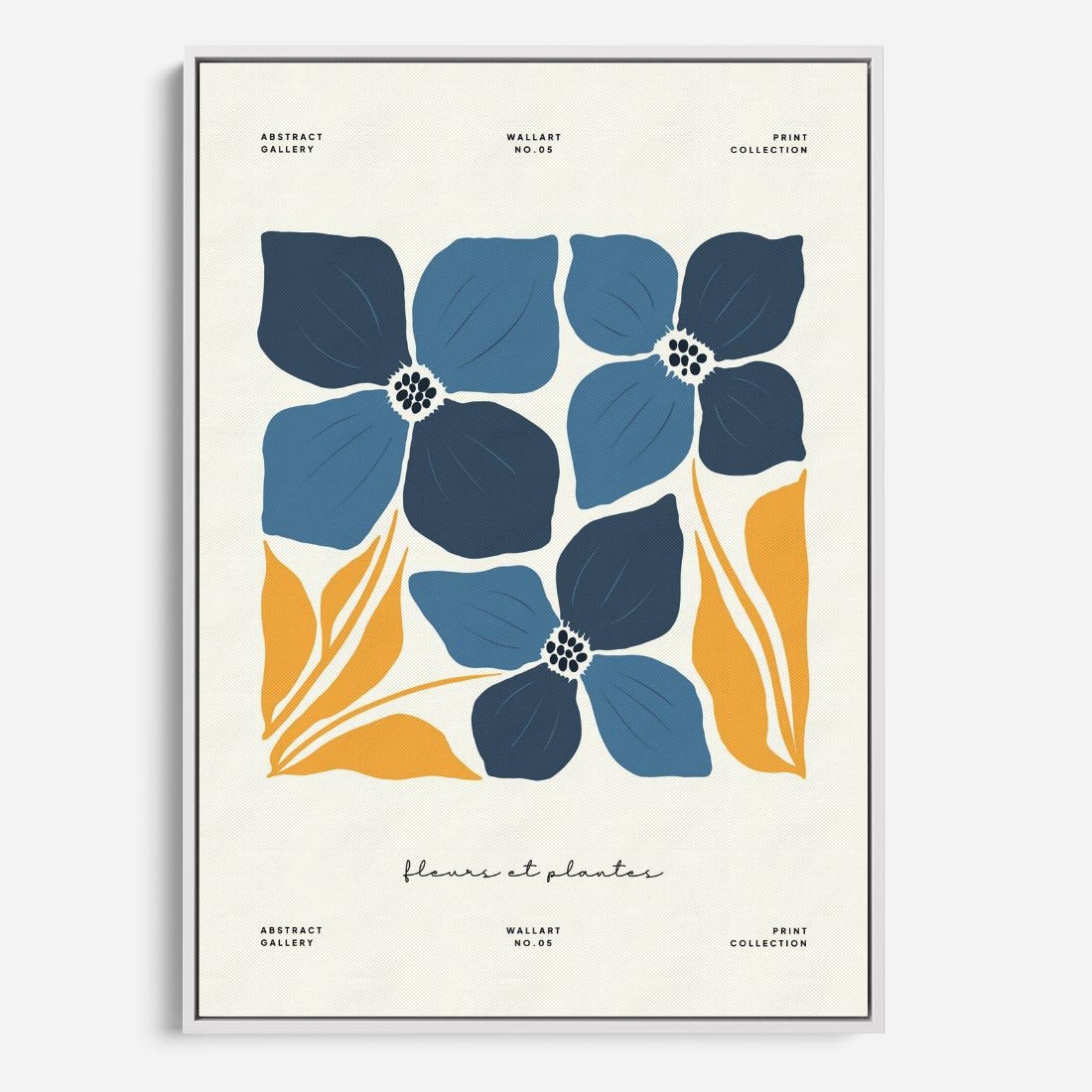 Obraz w ramie 50x70 - Błękitne Nowości - niebieskie kwiaty, nowoczesna sztuka - rama biała