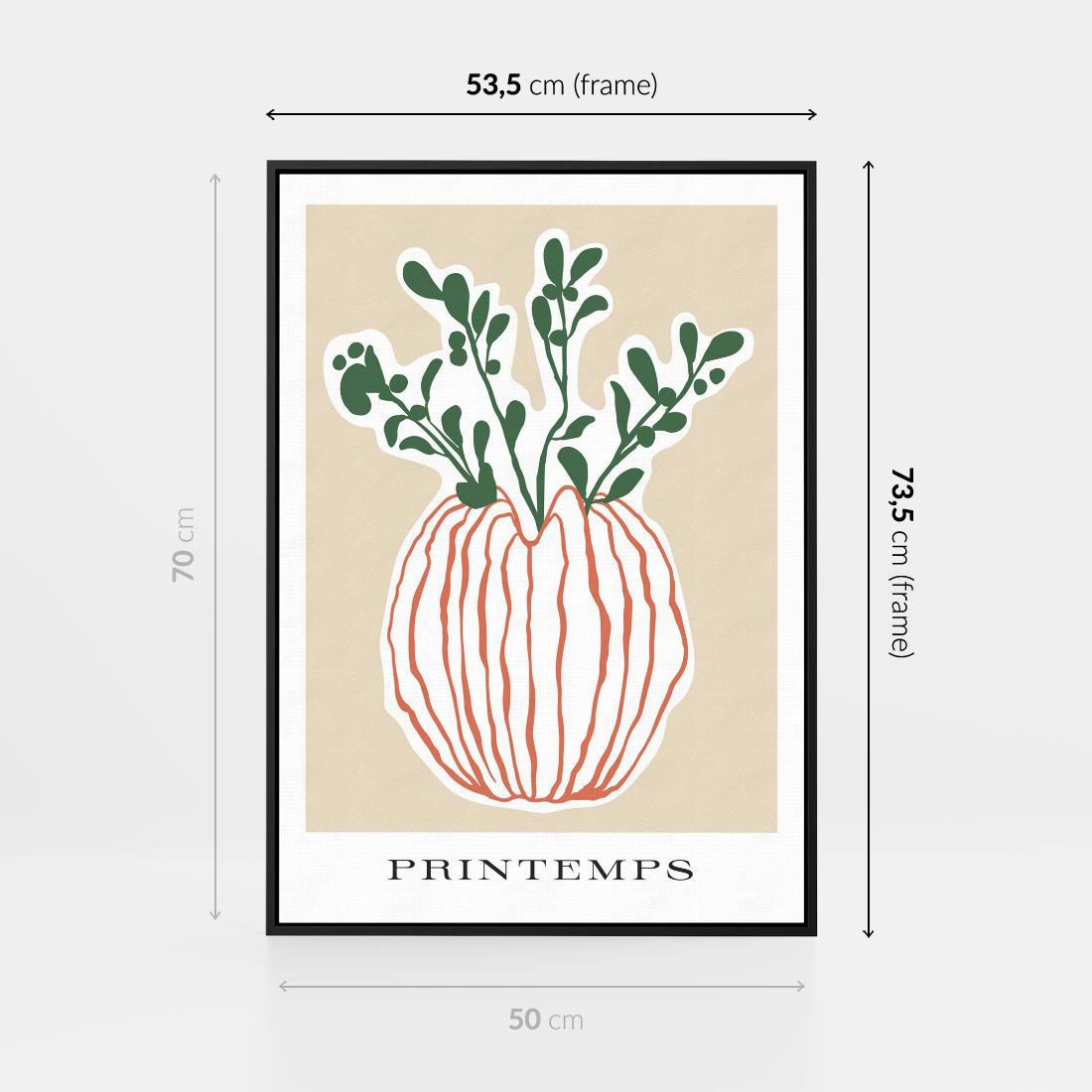 Ten plakat ukazuje delikatne gałązki w wazonie w minimalistycznym stylu, uzupełnione subtelną typografią. Sztuka ta emanuje duchem boho, wprowadzając przyjemny akcent natury do Twojej przestrzeni. Przez połączenie minimalizmu i boho stylu, plakat tworzy harmonijny i spokojny element dekoracyjny, który dodaje charakteru i wyjątkowej atmosfery.