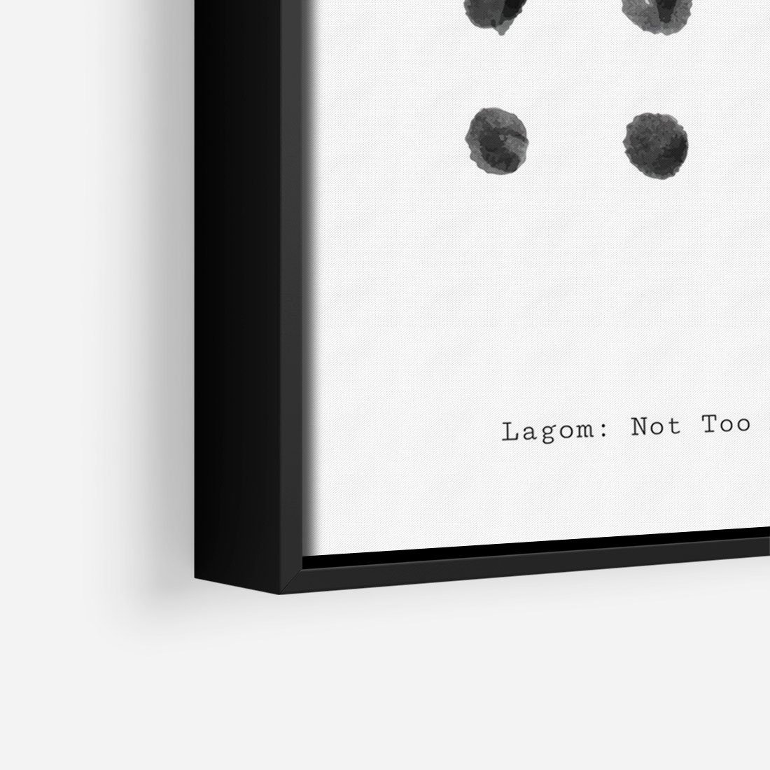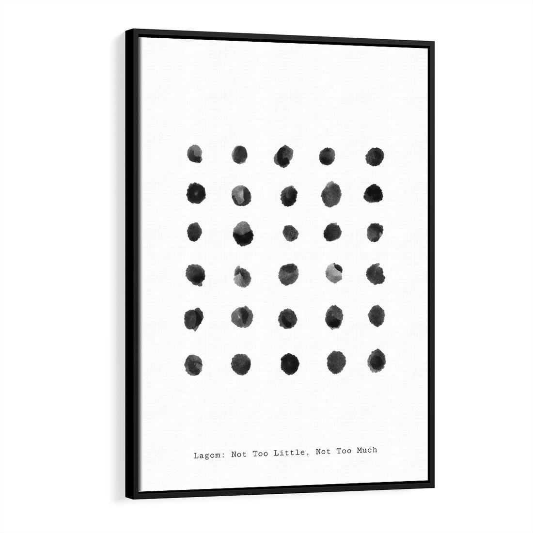 Ten minimalistyczny plakat skupia się na esencji prostoty poprzez czarne kropki na białym tle. Lagom typografia doskonale komponuje się z minimalistycznym wzornictwem, tworząc równowagę i spokój. To dzieło sztuki, które przypomina nam o mądrości w umiarze i pięknie w prostocie.