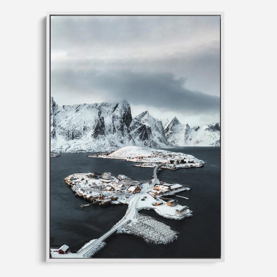 Obraz w ramie 50x70 - Ciepło i Urok Północy - skandynawskie, domki - rama biała