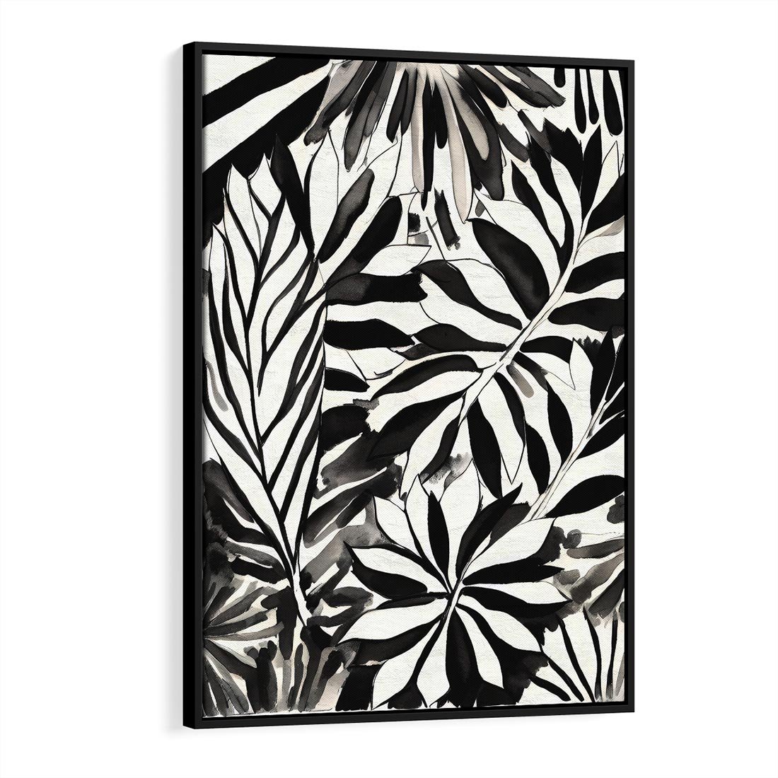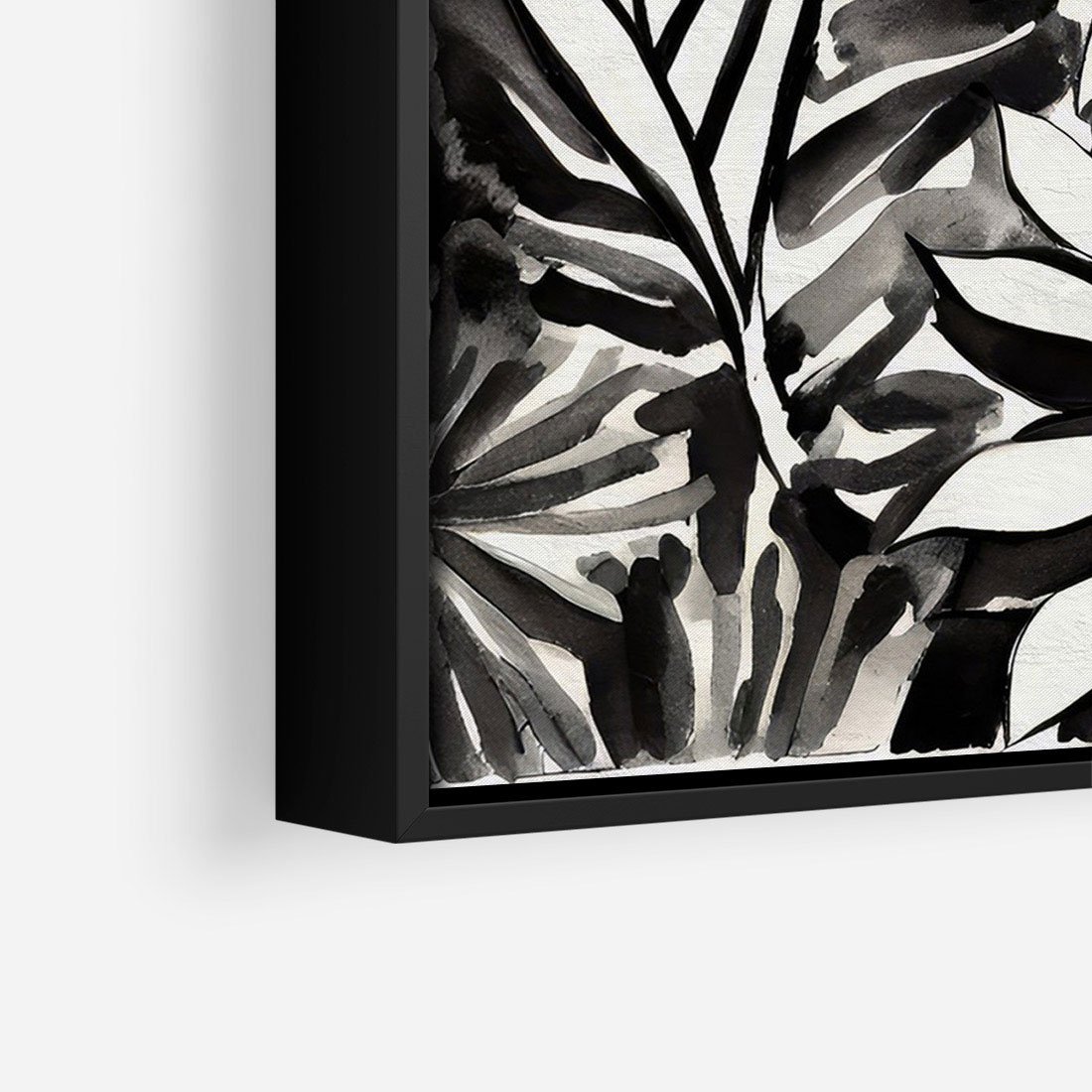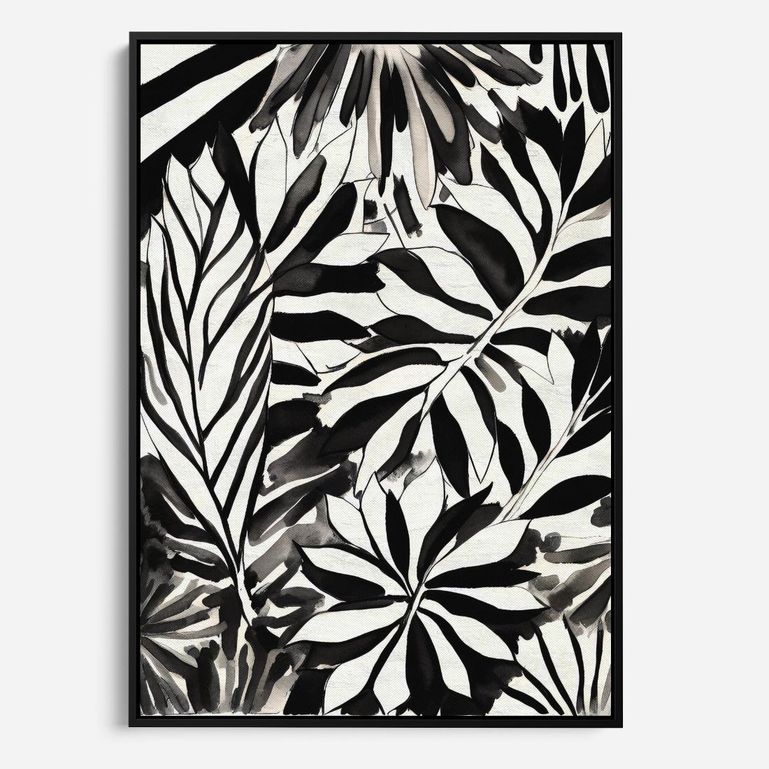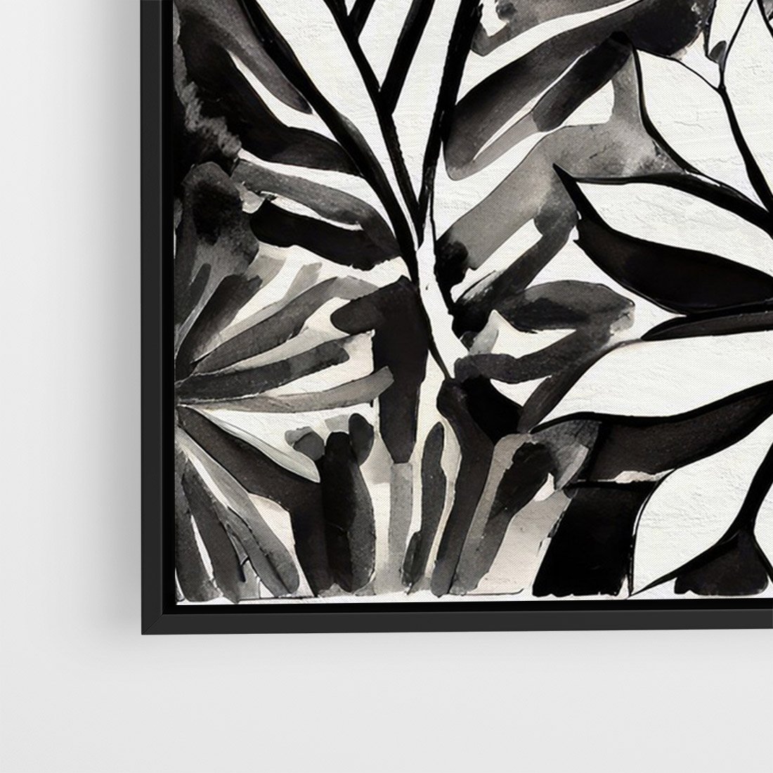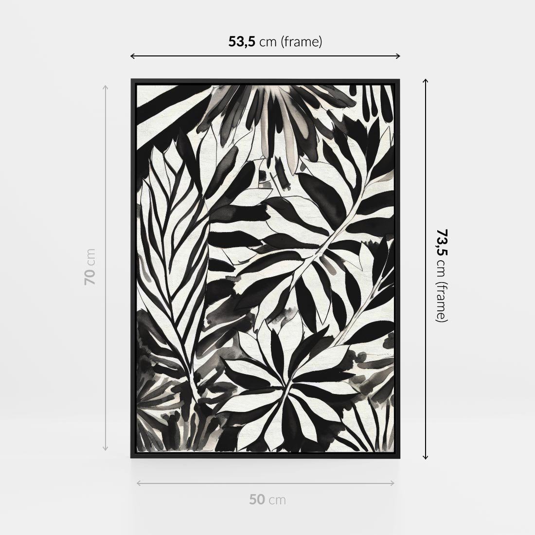 Obraz w ramie 50x70 - Czarne Liście - akwarelowy obraz, czarno biały - rama czarna