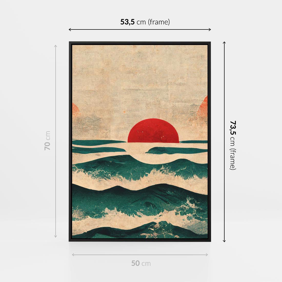 Japońska sztuka na płótnie, która przenosi nas w świat spokoju i harmonii. Widok zachodu słońca nad oceanem malowany na starym papirusie emanuje mistycznym urokiem. Styl japandi, charakteryzujący się minimalistycznym pięknem, doskonale współgra z dynamiką fal. Czerwone słońce nadaje obrazowi wyjątkowego nastroju, przenosząc nas w pejzaż dalekiej Japonii. To dzieło sztuki, które oczarowuje i zachwyca.