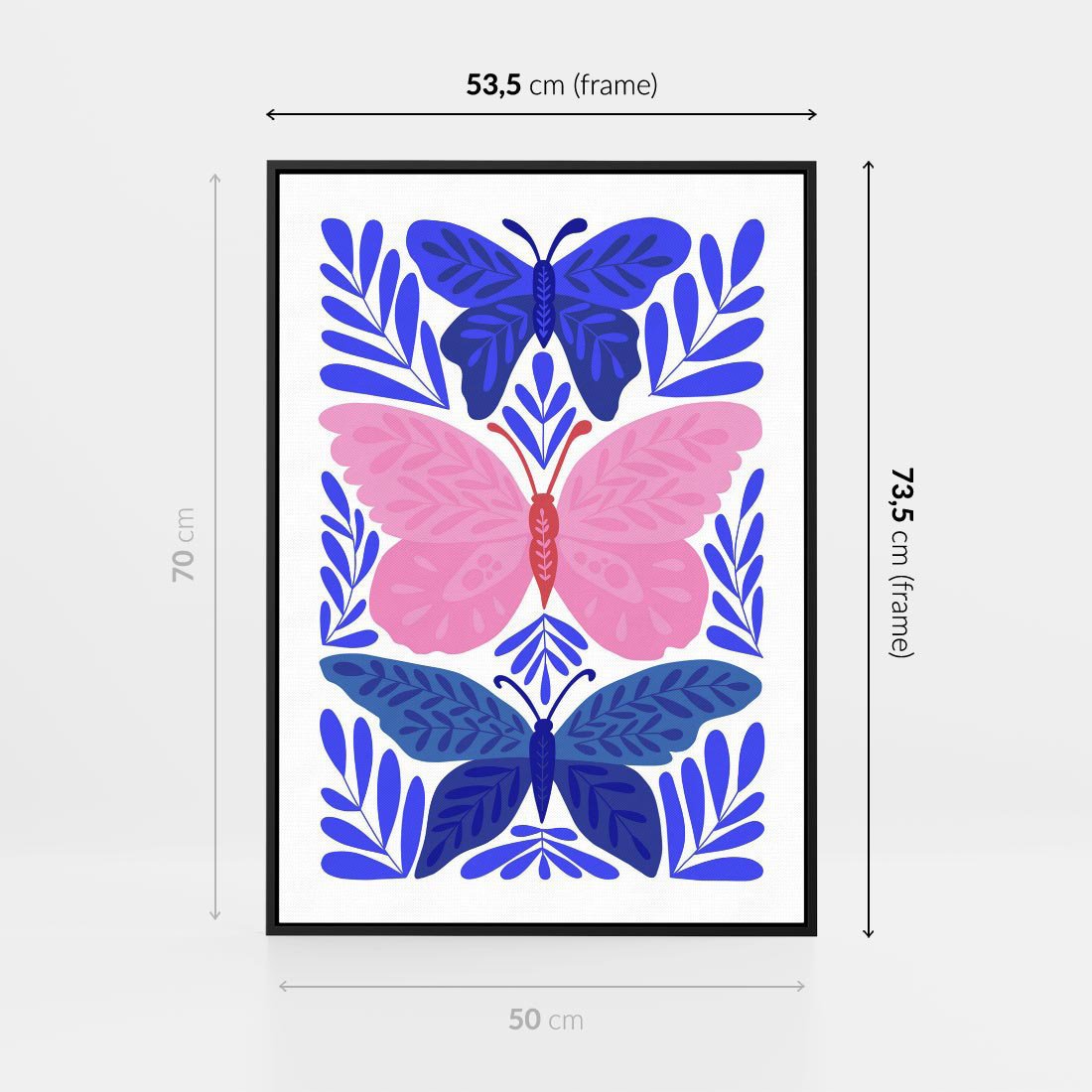 Obraz w ramie 50x70 - Delikatna Symfonia Natury - motyle, rośliny - rama czarna