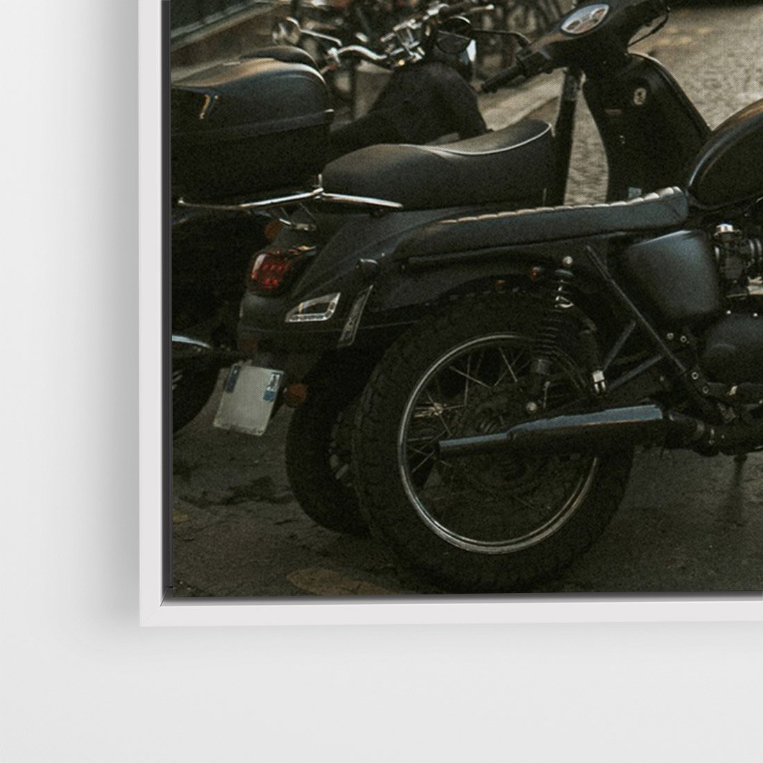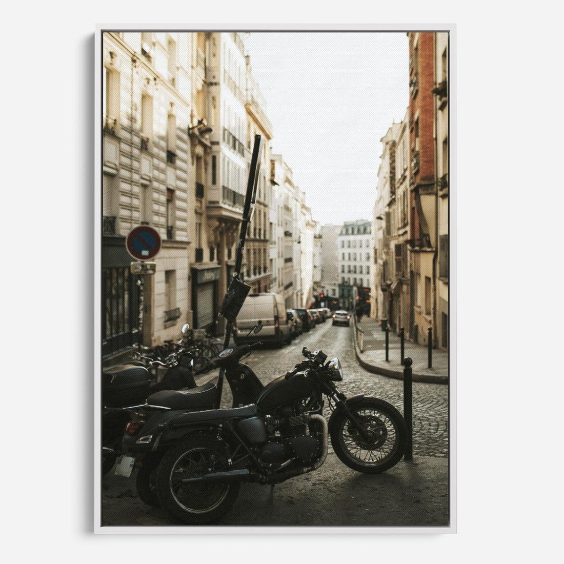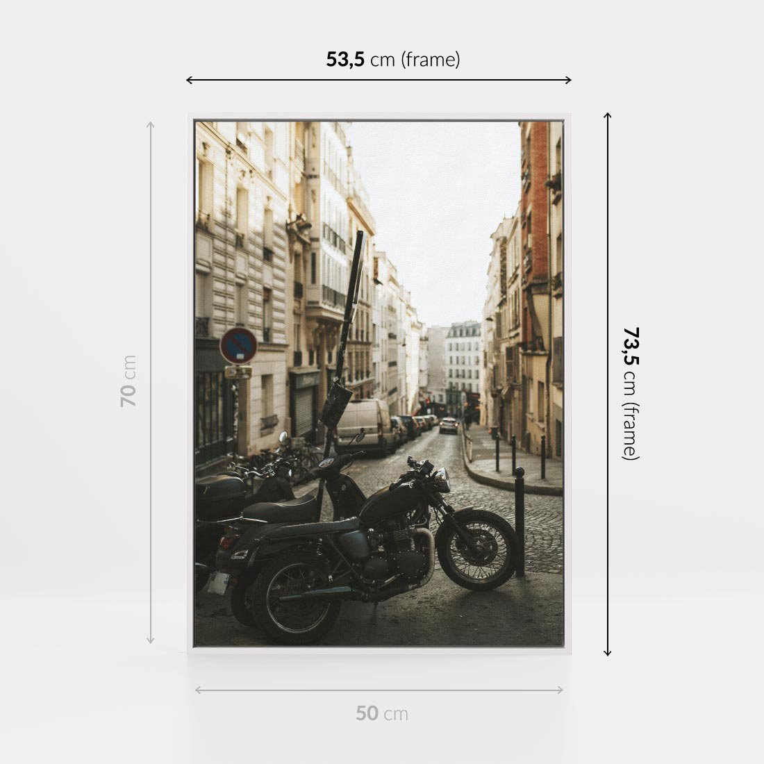 Obraz w ramie 50x70 - Ducha Przygody - motor, uliczka - rama biała