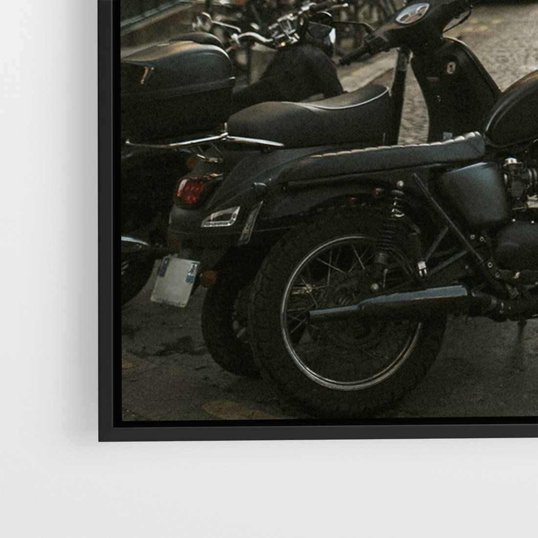 Obraz w ramie 50x70 - Ducha Przygody - motor, uliczka - rama czarna