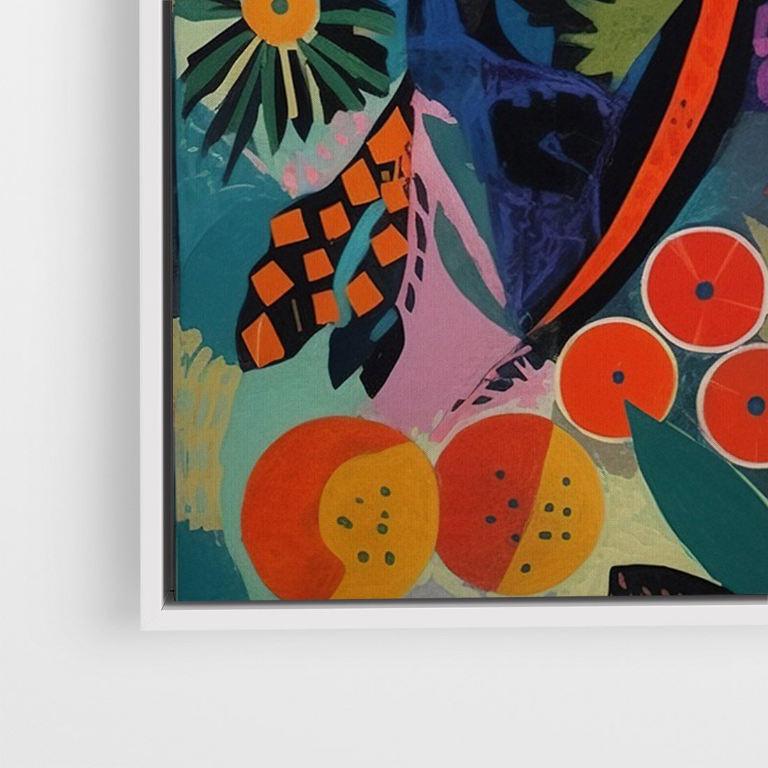 Ten abstrakcyjny obraz olejny, nawiązujący do stylu Picassa, eksploruje bogactwo kolorów i form owoców. Żywe barwy oraz swobodne linie tworzą dynamiczną kompozycję, oddającą radość i energię natury.