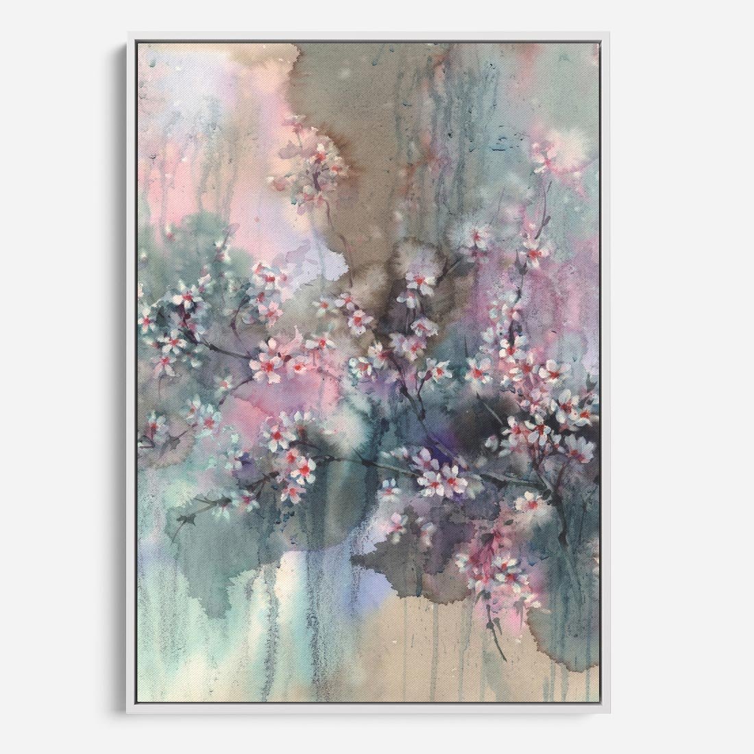 Obraz w ramie 50x70 - Efemeryczne Kwitnienie Drzew - akwarela, rozmyte pastelowe tłó - rama biała