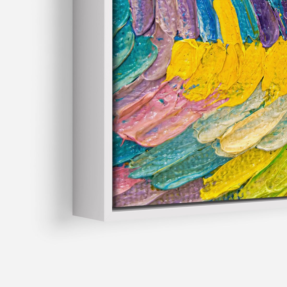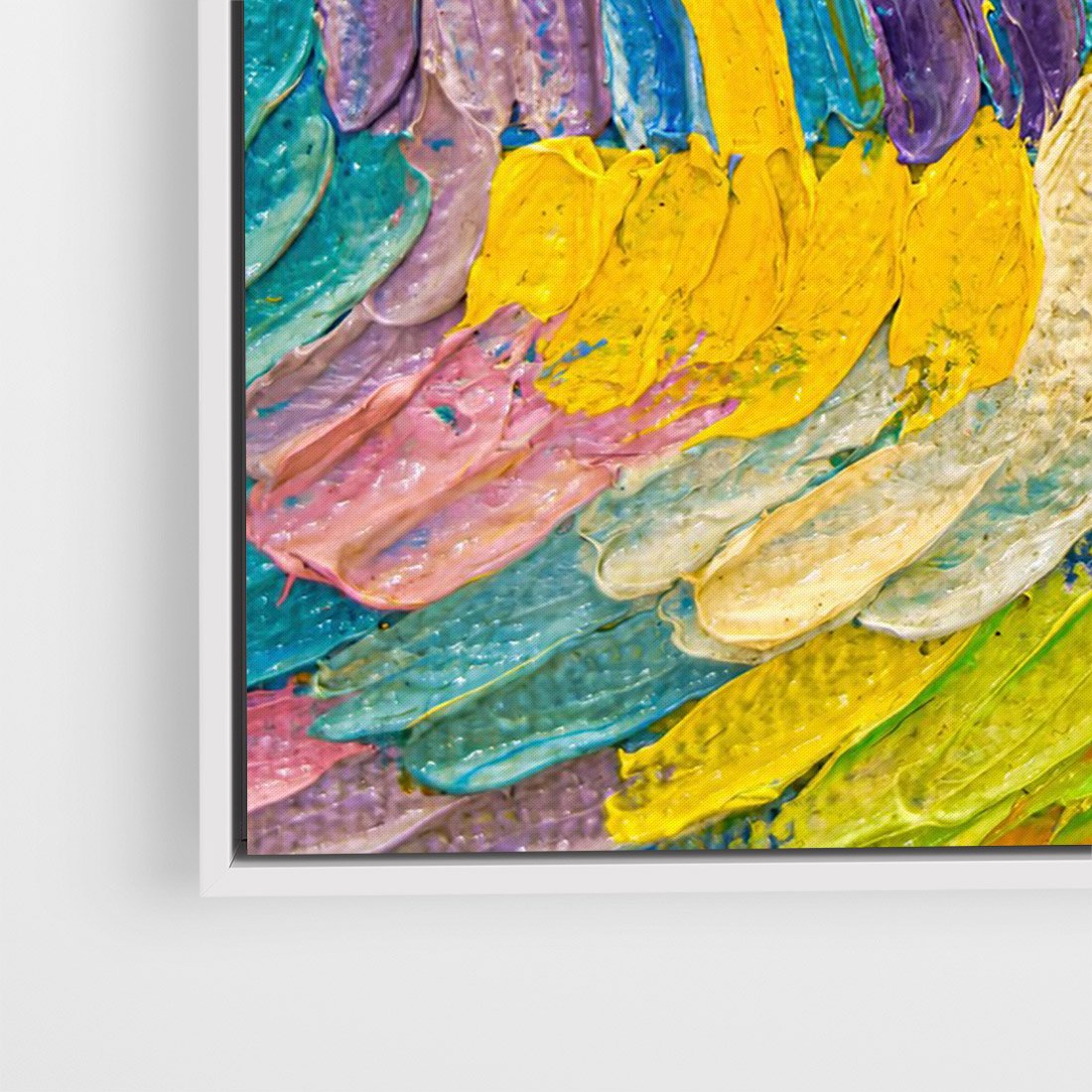 To abstrakcyjne dzieło sztuki przypominające egzotyczne pióra ptaka wzbudza wyobraźnię i zachwyca bogactwem tęczowych kolorów. Farby olejne zostały zastosowane z precyzją, by stworzyć teksturę przypominającą pióra. Obraz emanuje tajemniczością i pięknem natury, idealny dla miłośników egzotycznych krajobrazów i sztuki abstrakcyjnej.