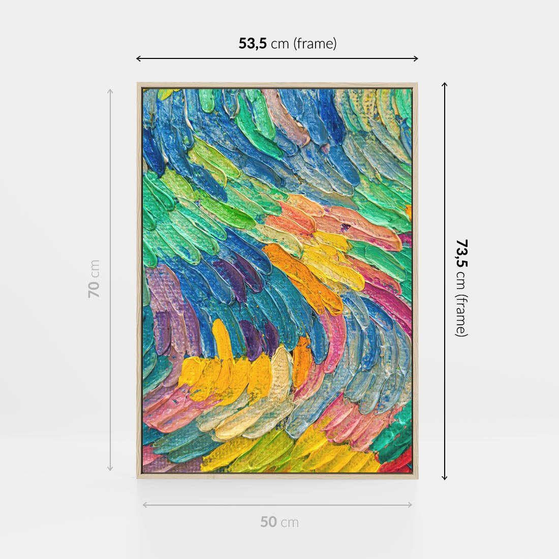 Obraz w ramie 50x70 - Egzotyczne Pióra - abstrakcyjne dzieło, farby olejne - rama drewno