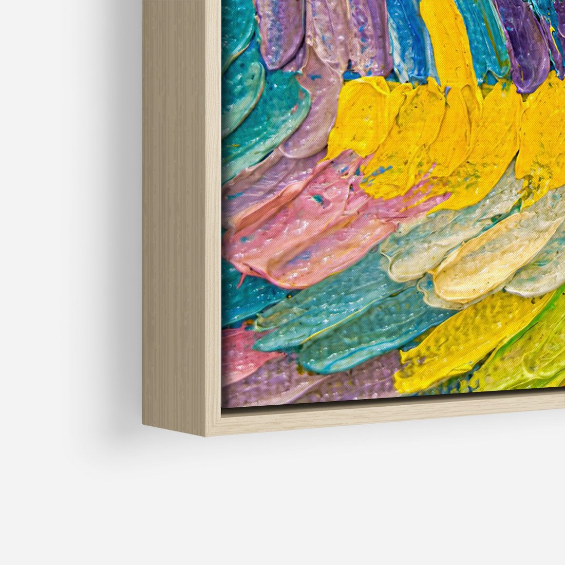 To abstrakcyjne dzieło sztuki przypominające egzotyczne pióra ptaka wzbudza wyobraźnię i zachwyca bogactwem tęczowych kolorów. Farby olejne zostały zastosowane z precyzją, by stworzyć teksturę przypominającą pióra. Obraz emanuje tajemniczością i pięknem natury, idealny dla miłośników egzotycznych krajobrazów i sztuki abstrakcyjnej.