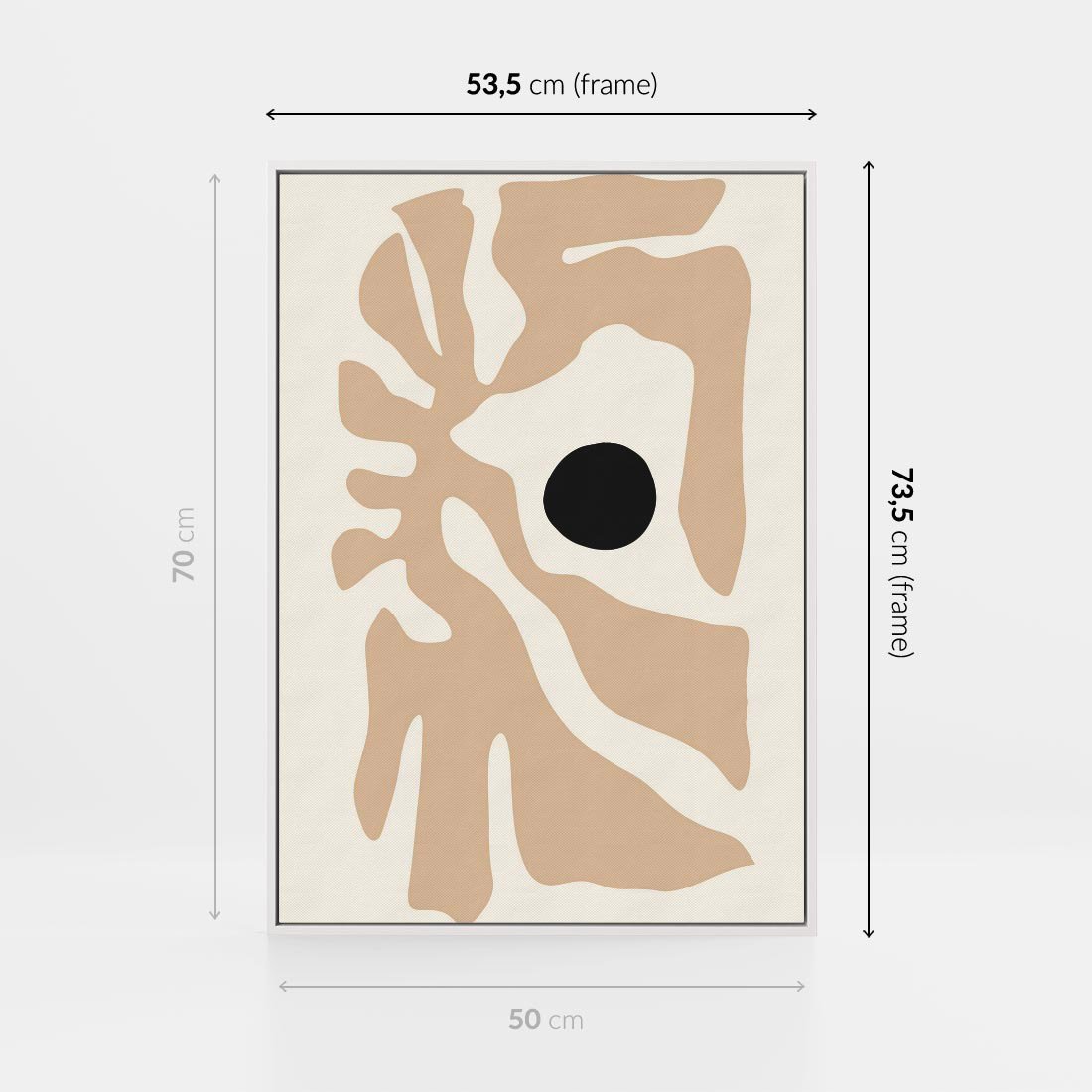 Obraz w ramie 50x70 - Eksploracja Abstrakcji - beżowa absrakcyjna kompozycja, czarny akcent - rama biała