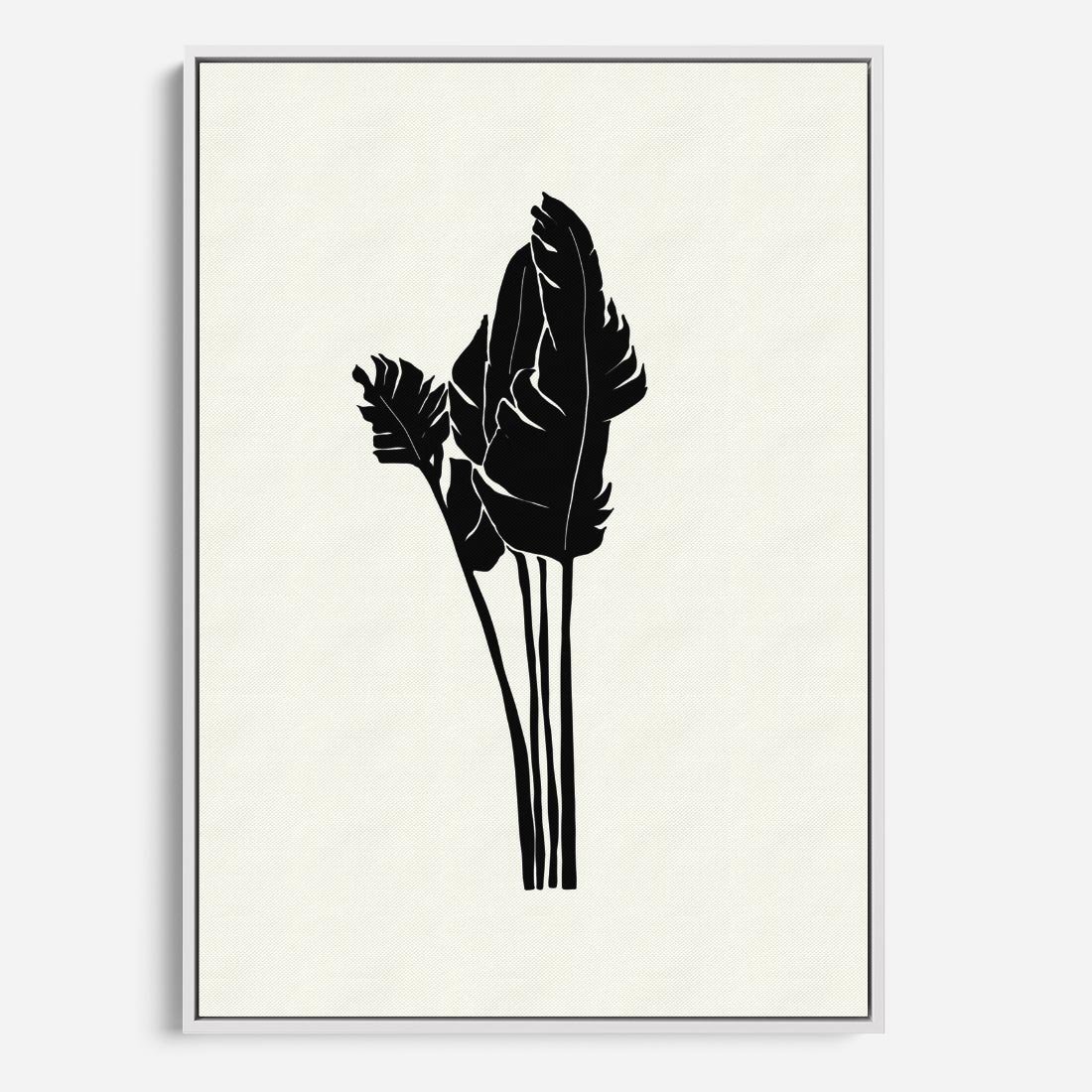 Ta nowoczesna sztuka ukazuje minimalistyczną siłę liści palmy w kontrastującej tonacji czarno-białej. Motyw roślinny ożywa w subtelnej harmonii, tworząc wyrafinowany efekt wizualny.