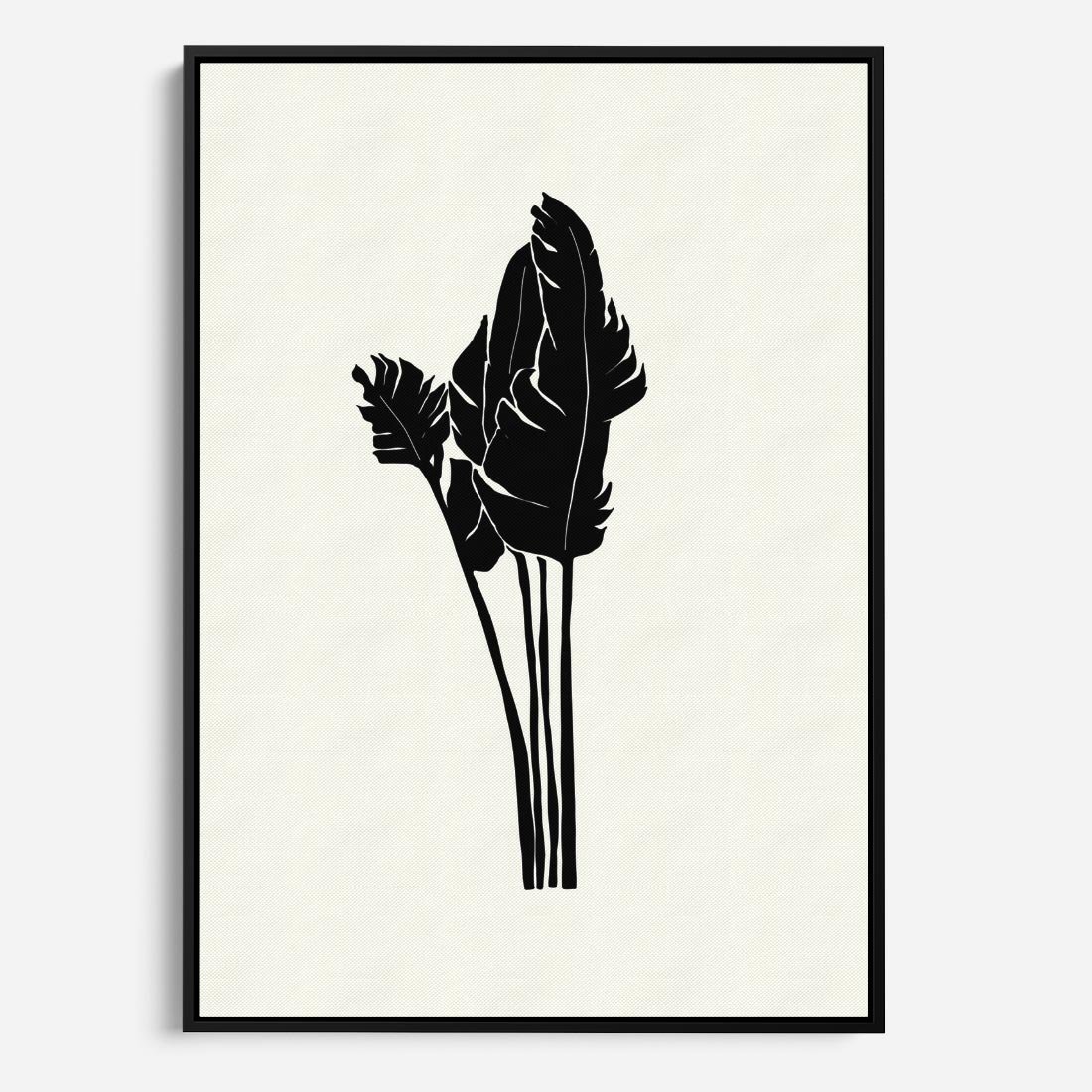 Ta nowoczesna sztuka ukazuje minimalistyczną siłę liści palmy w kontrastującej tonacji czarno-białej. Motyw roślinny ożywa w subtelnej harmonii, tworząc wyrafinowany efekt wizualny.