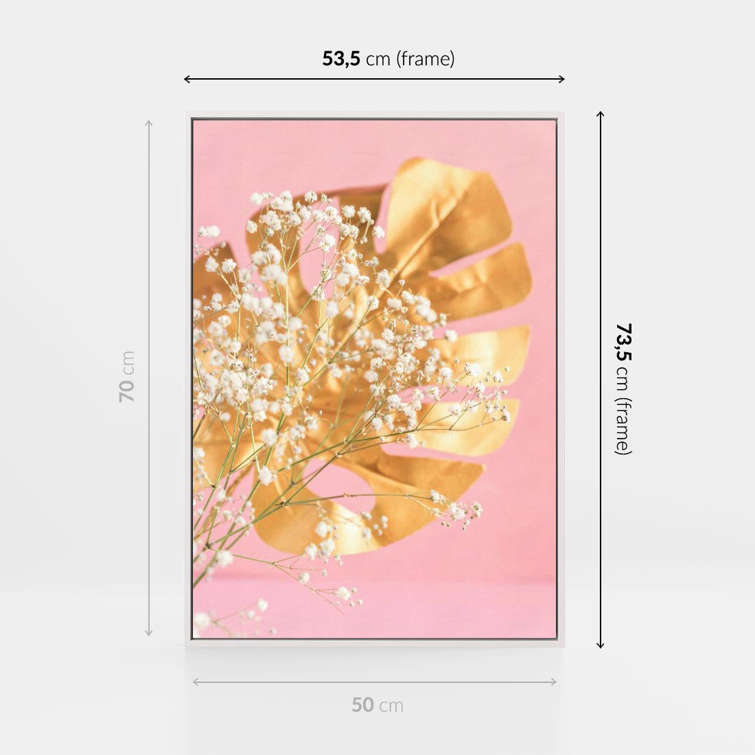 Obraz w ramie 50x70 - : Elegancja w Złocie - złote, liście - rama biała