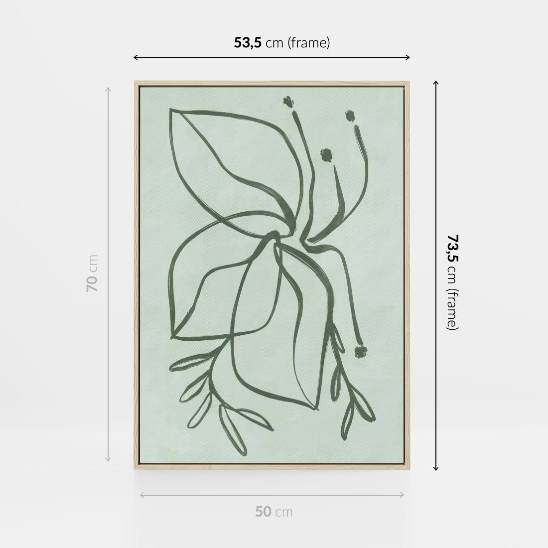 Obraz w ramie 50x70 - Energetyczne Odrodzenie Natury - abstrakcyjne delikatne zielone linie, podobne do gałęzi kwiatów - rama drewno