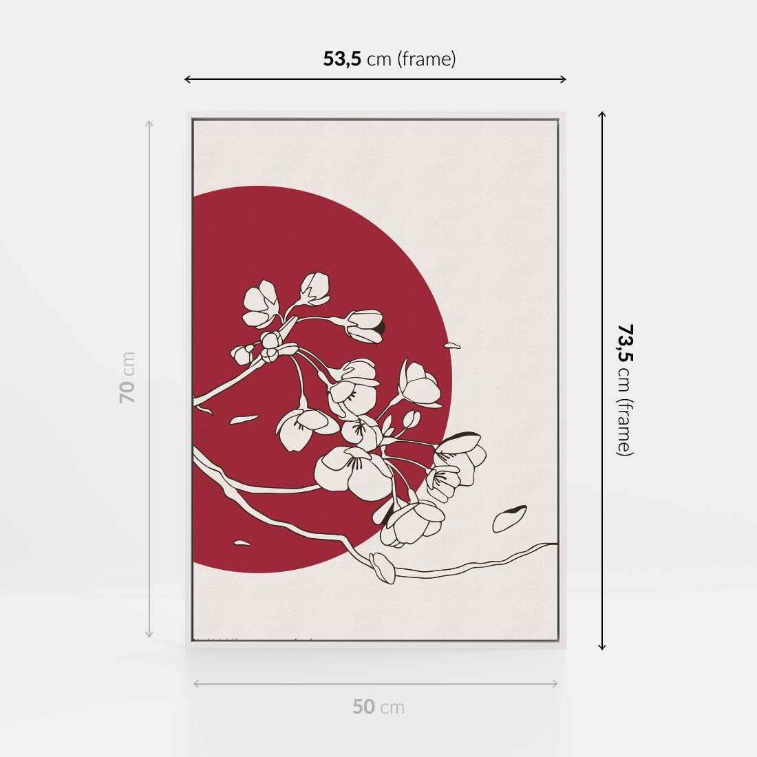 Obraz w ramie 50x70 - Esencja Zen - kwiatnąca wiśnia, orientalna grafika - rama biała