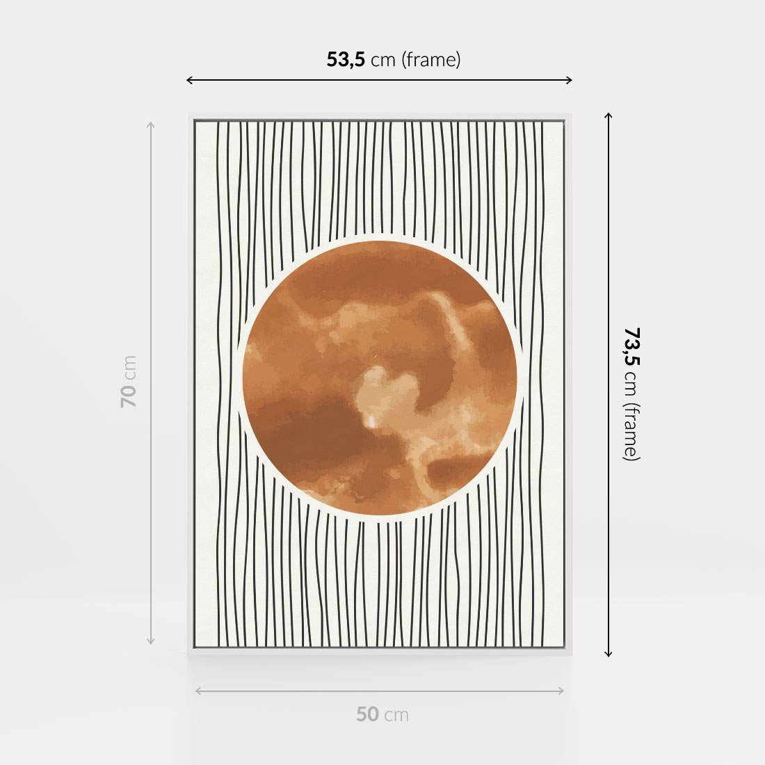 To minimalistyczny plakat w stylu boho prezentuje miedziane koło w połączeniu z geometrycznym szkicem. To kreatywne połączenie wprowadza do Twojej przestrzeni unikalną aurę boho, tworząc równocześnie interesujący akcent minimalistyczny.