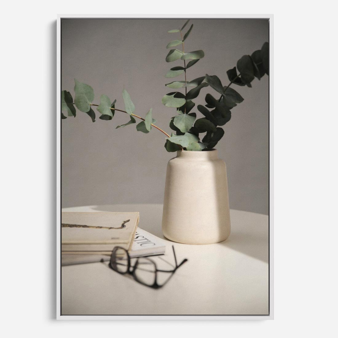 Obraz w ramie 50x70 - Eukaliptusowe liście w okularach - liście, eukaliptus - rama biała
