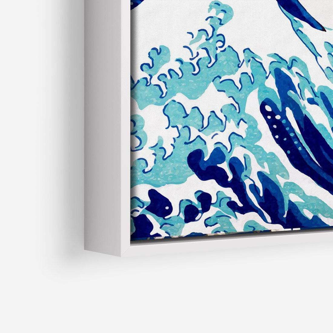 Obraz w ramie 50x70 - Fala Japandi - wielka fala w Kaganawie, obraz Hokusai - rama biała