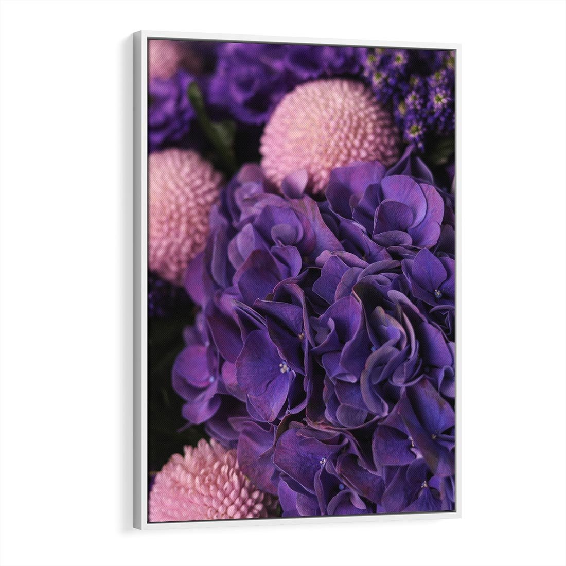 Obraz w ramie 50x70 - Fioletowa hortensja - kwiaty, hortensja - rama biała