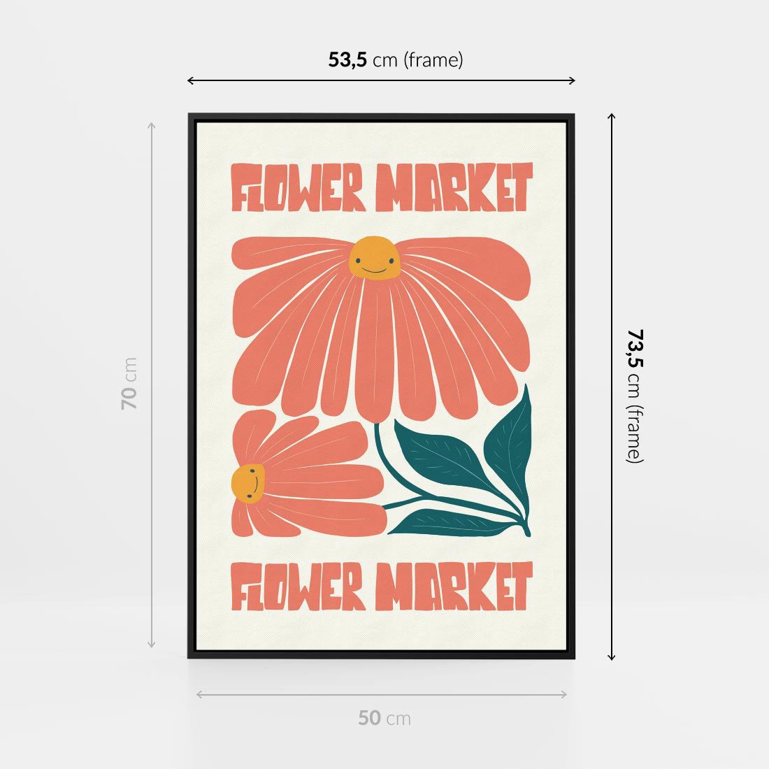Obraz w ramie 50x70 - Grafika Pełna Radości - wesoła grafika, uśmiechnięte kwiaty - rama czarna
