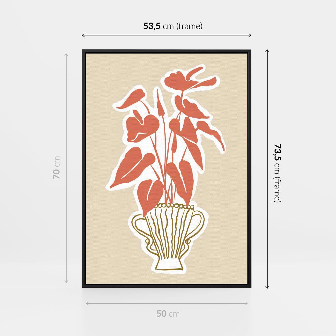Obraz w ramie 50x70 - Harmonijne Echa - abstrakcyjne kwiaty liście, elegancka kompozycja - rama czarna