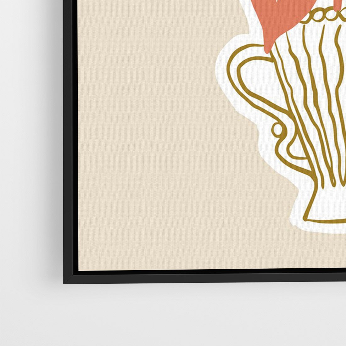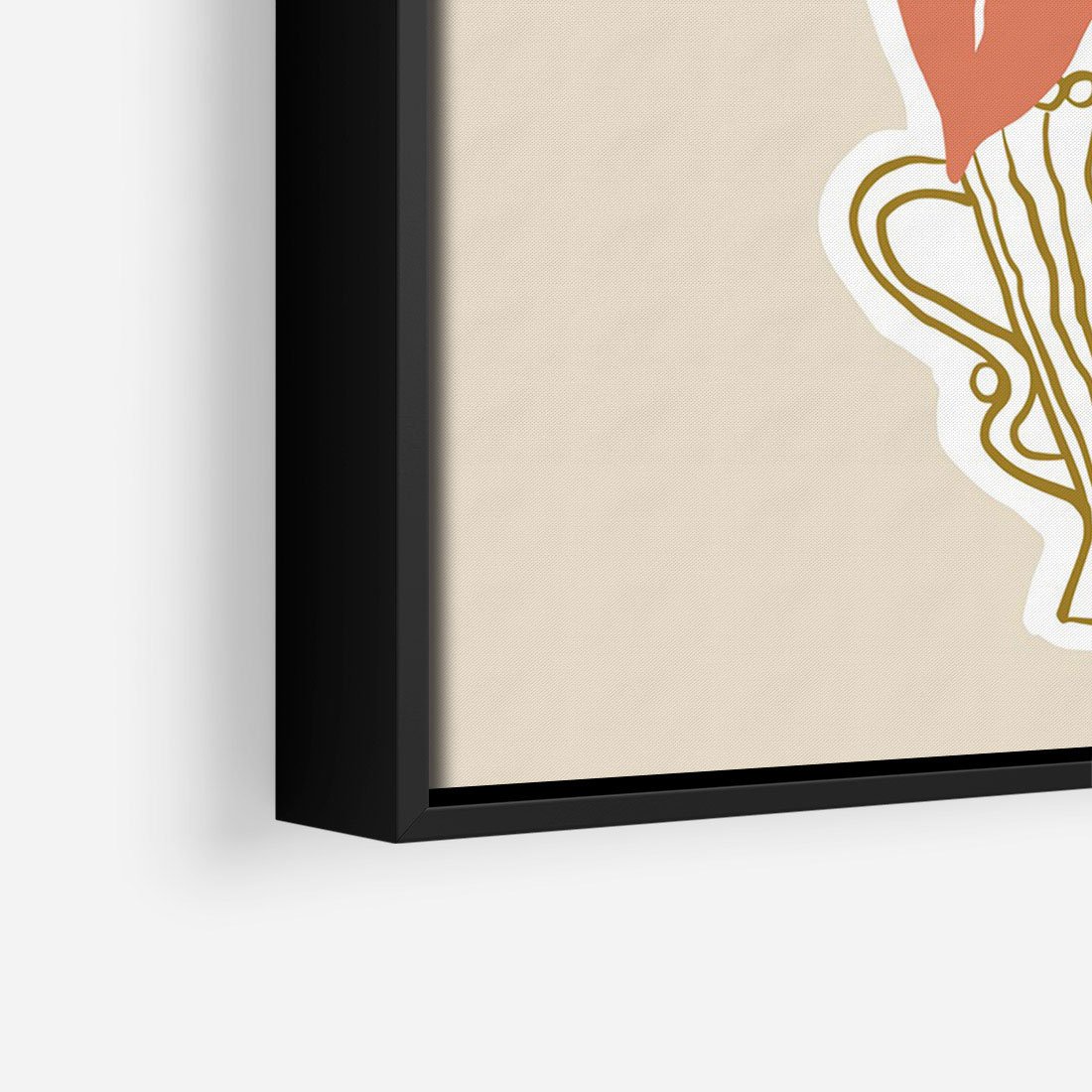 Ten nowoczesny plakat prezentuje abstrakcyjne kwiaty i liście w eleganckiej kompozycji. Sztuka ta łączy naturę z nowoczesnością, tworząc piękną i wyrazistą dekorację, która dodaje przestrzeni subtelności i klasy.