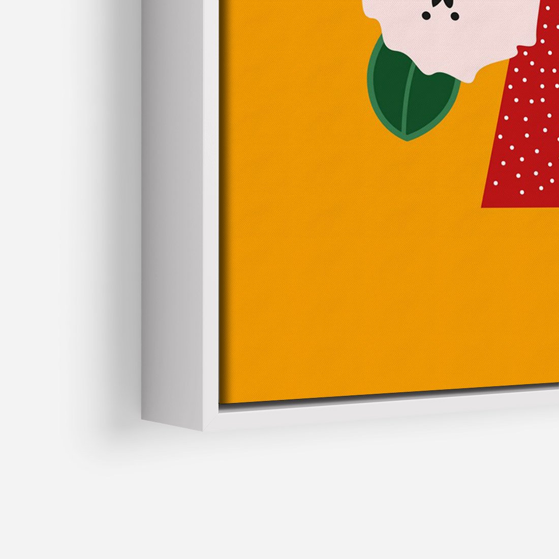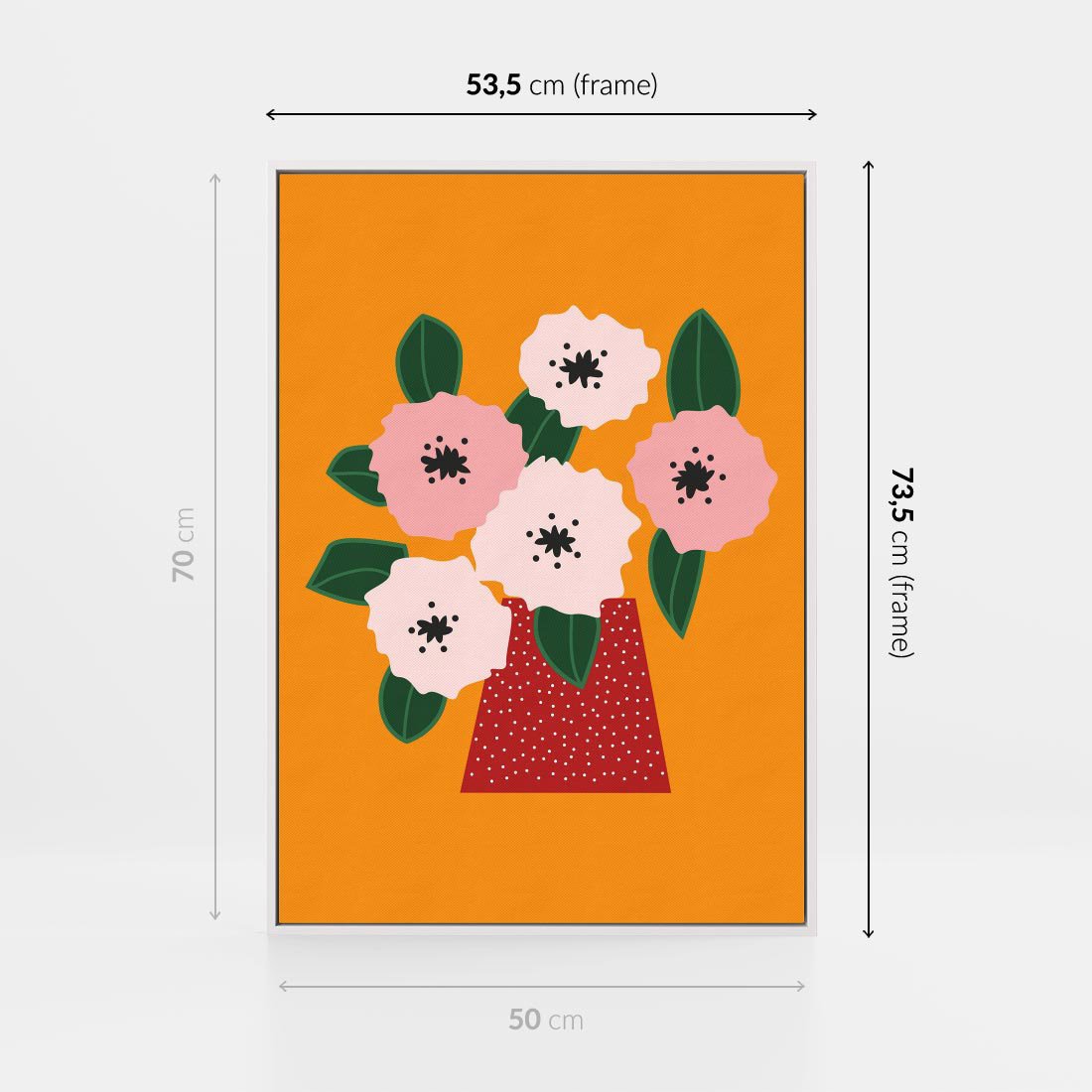 Obraz w ramie 50x70 - Harmonijne Granice - abstrakcyjne kwiaty, żółte tło - rama biała